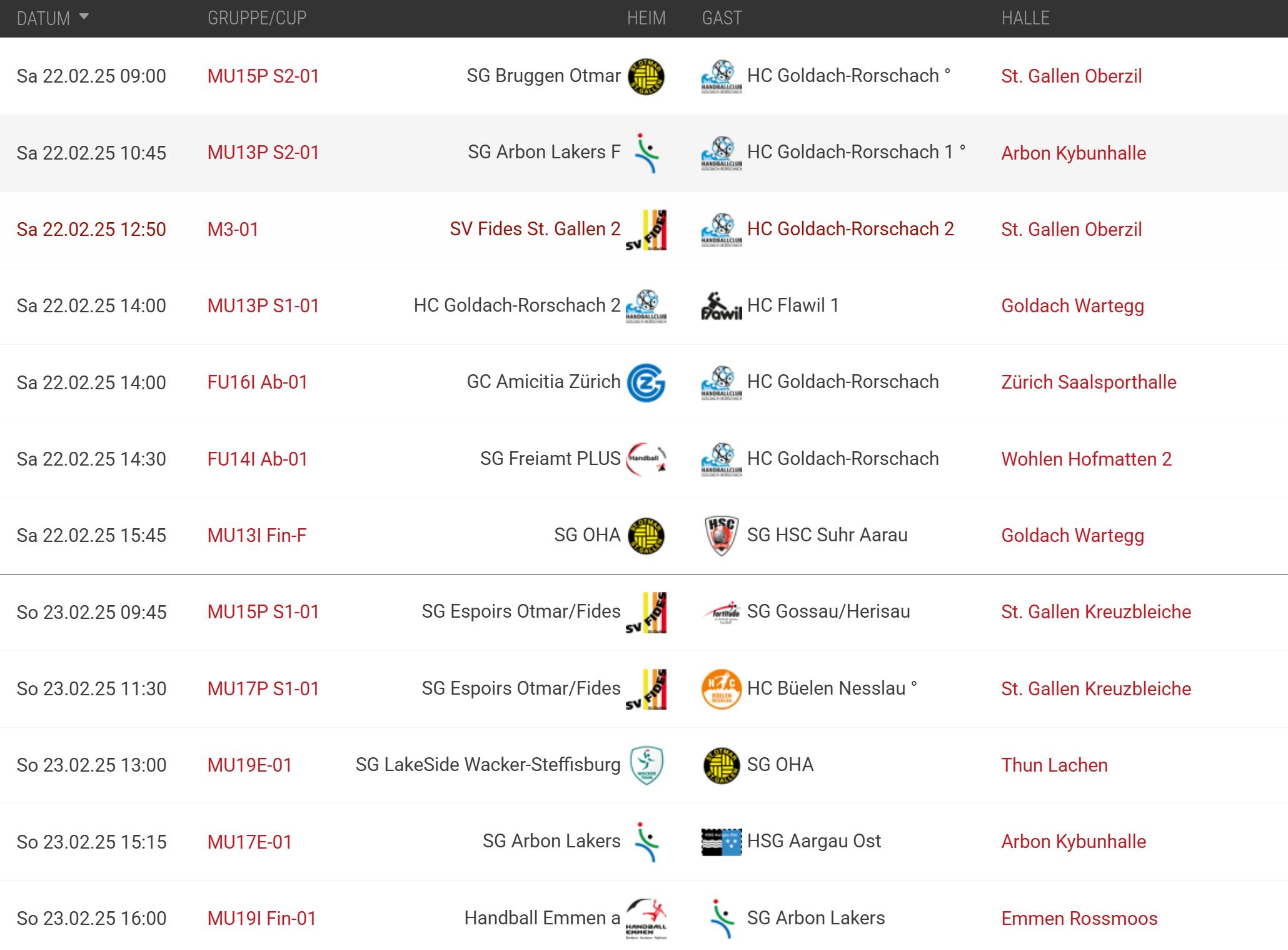 HC GoRo: 2 Junioren-Teams in Goldach im EinsatzThemen:HC GoRo 22. Februar 2025 - 05:00Mehr Infos auf dem Flyer unten und auf der Gesamtübersicht aller im Einsatz stehenden Teams mit direkter und indirekter HC GoRo-Beteiligung ganz unten. Teilen mit: Einen Link per E-Mail an einen Freund senden (Wird in neuem Fenster geöffnet) E-Mail Drucken (Wird in neuem Fenster geöffnet) Drucken Auf Facebook teilen (Wird in neuem Fenster geöffnet) Facebook Auf X teilen (Wird in neuem Fenster geöffnet) X Auf WhatsApp teilen (Wird in neuem Fenster geöffnet) WhatsApp Gefällt mir:Gefällt mir Wird geladen …Newsletter abonnieren Bitte dieses Feld leer lassenBitte wähle, ob Du über jeden neuen Beitrag sofort oder lieber jeden Morgen gegen 9 Uhr eine Zusammenfassung der neusten Beiträge erhalten möchtest.Liste(n) auswählen: Neues vom Echo (Zusammenfassung) Neues vom Echo (Sofortbenachrichtigung) Dieses Feld wird benötigt.Prüfen Sie Ihren Posteingang und den Spamordner, um Ihr Abonnement zu bestätigen.