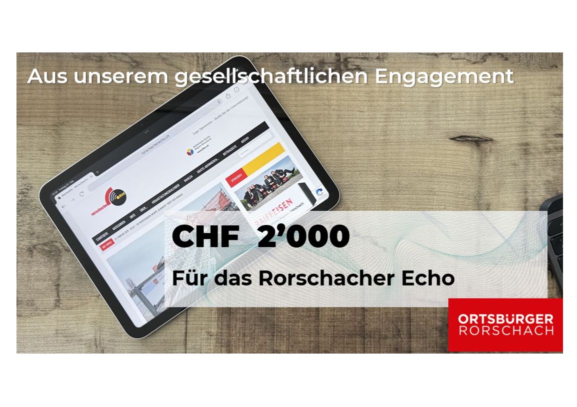 Die Ortsbürger Rorschach schreiben: „Wie viele andere unterstützen auch wir von der Ortsbürgergemeinde Rorschach das «Rorschacher Echo» seit Jahren und sind sehr dankbar, eine digitale Plattform zu haben, die es Rorschacherinnen und Rorschachern erlaubt, jeden Tag zu erfahren, was wo in Rorschach und der näheren Region läuft. Das grosse Engagement von Res Lerch unterstützen wir deshalb zusätzlich mit CHF 2’000 und finanzieren damit vor allem den Versand des täglichen Newsletters mit. Wir freuen uns weiterhin auf News aus unserer Stadt am See.“