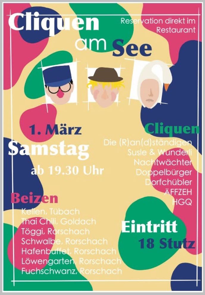 Der Neustart der legendären Cliquenfasnacht passiert heute in einigen Restaurants in Rorschach, Goldach und Tübach. Man muss sich aber im Vorfeld in den einzelnen Beizen erkundigen, ob es überhaupt noch Platz hat. Das Töggi ist auf jeden Fall bereits lange ausverkauft!! Das Rorschacher Echo wird wegen anderen Festivitäten nicht vor Ort sein.