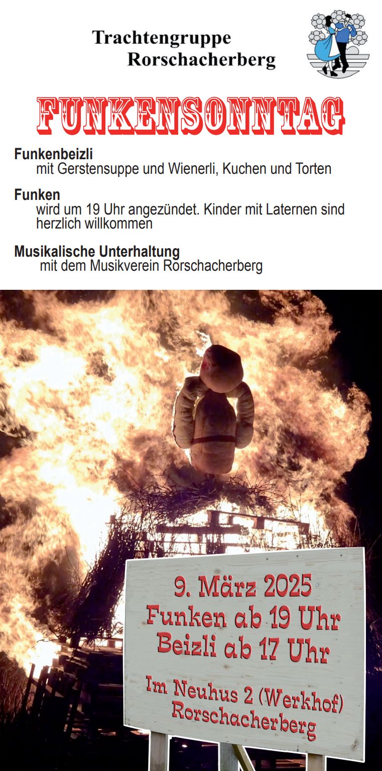Die Trachtengruppe Rorschacherberg lädt heute ab 17 Uhr wieder in das Bauamt Rorschacherberg. Details findet man auf dem Flyer.