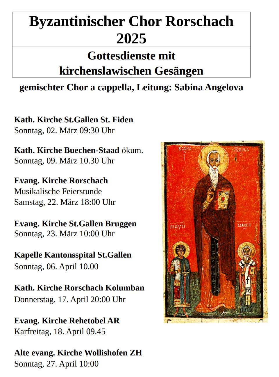 Der Byzantinische Chor Rorschach wird heute kirchenslawische Gesänge vortragen. Konzertbeginn in der Evangelischen Kirche Rorschach ist um 18 Uhr.