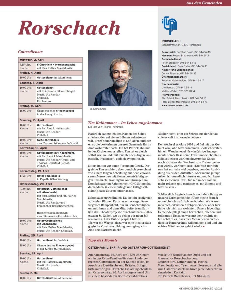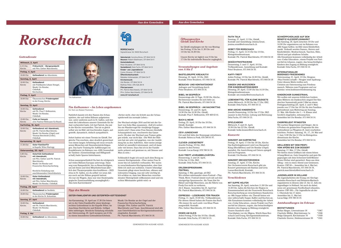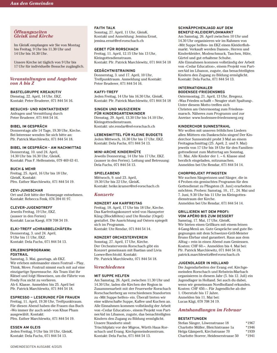 Das Angebot von Ref. Rorschach im April 2025Themen:KulturPartnerRef. RorschachRorschach 5. April 2025 - 05:15Zusätzliche Informationen rund um das Angebot der Evangelisch-reformierten Kirchgemeinde Rorschach finden Interessierte immer auch hier, hier und hier. Teilen mit: Klicken, um einem Freund einen Link per E-Mail zu senden (Wird in neuem Fenster geöffnet) E-Mail Klicken zum Ausdrucken (Wird in neuem Fenster geöffnet) Drucken Klick, um auf Facebook zu teilen (Wird in neuem Fenster geöffnet) Facebook Klicke, um auf X zu teilen (Wird in neuem Fenster geöffnet) X Klicken, um auf WhatsApp zu teilen (Wird in neuem Fenster geöffnet) WhatsApp Gefällt mir:Gefällt mir Wird geladen …Newsletter abonnieren Bitte dieses Feld leer lassenBitte wähle, ob Du über jeden neuen Beitrag sofort oder lieber jeden Morgen gegen 9 Uhr eine Zusammenfassung der neusten Beiträge erhalten möchtest.Liste(n) auswählen: Neues vom Echo (Zusammenfassung) Neues vom Echo (Sofortbenachrichtigung) Dieses Feld wird benötigt.Prüfen Sie Ihren Posteingang und den Spamordner, um Ihr Abonnement zu bestätigen.