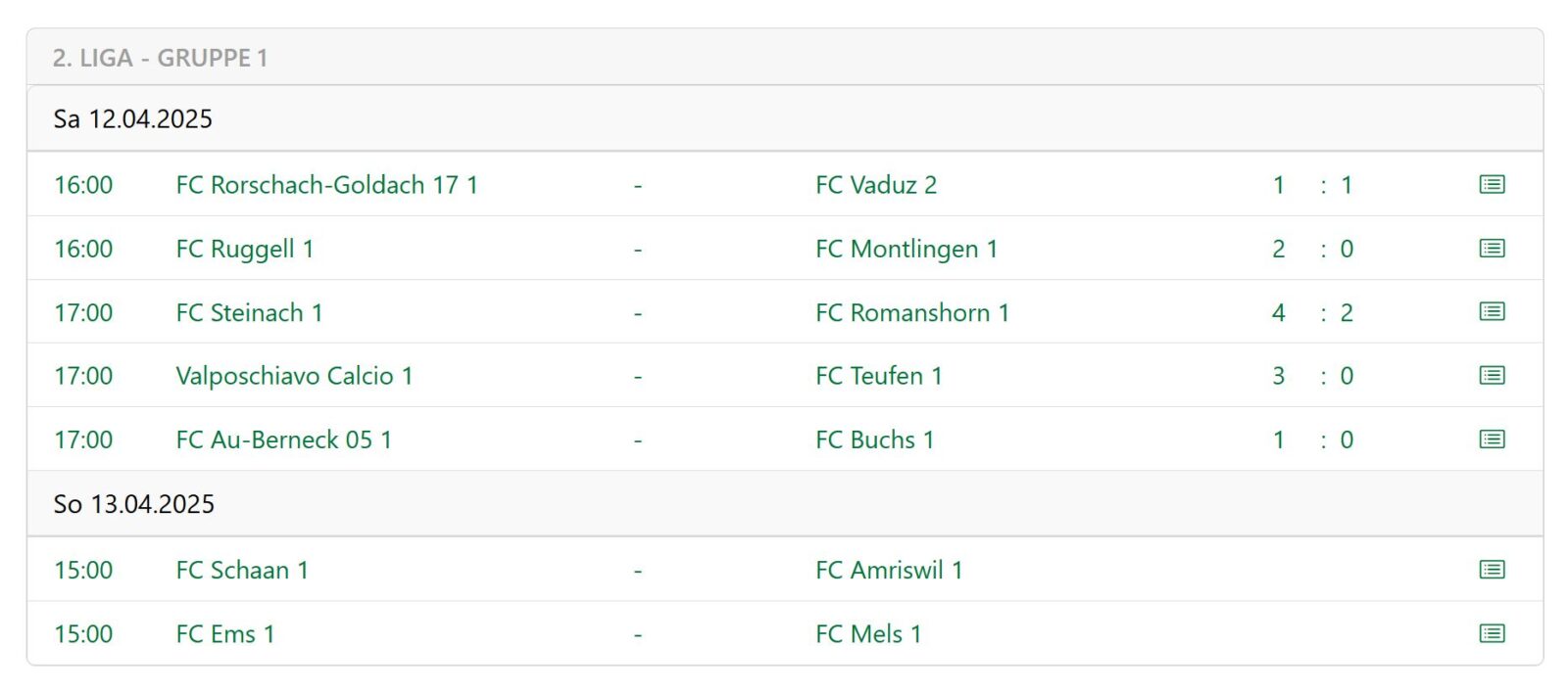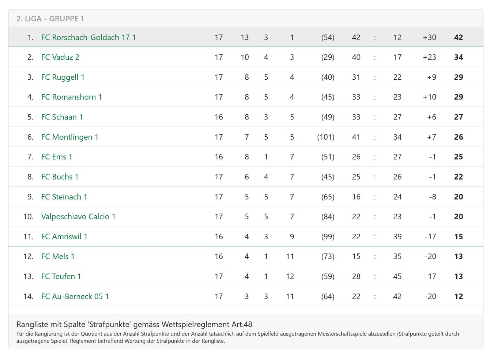 1:1 trennten sich heute Nachmittag der FC Rorschach-Goldach 17 und der FC Vaduz 2. Den Ausgleich für den FCRG17 erzielte Dejan Peric (Beitragsbild) in der 47. Minute. Hier erste Matchbilder. Eine zweite Tranche gibt es dann morgen zum Brunch. Ganz unten die weiteren Resultate von heute und die aktualisierte Tabelle.