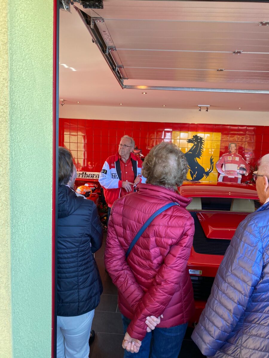 Der Rundgang war äusserst interessant und lebendig gestaltet. Ferrari Joe verstand es, mit grossem Wissen, Begeisterung und einem guten Schuss Humor die Besucherinnen und Besucher in seine faszinierende Ferrari-Welt mitzunehmen. Die Gruppe erhielt spannende Einblicke in seine Geschichte und die Leidenschaft, die hinter seiner Sammlung steckt. Besonders beeindruckend waren die zahlreichen Ferrari-Miniaturen, Sammelstücke aus der Formal 1-Welt, Fotos, Anekdoten und andere aufschlussreiche Details, die den Rundgang zu einem echten Erlebnis machten.
