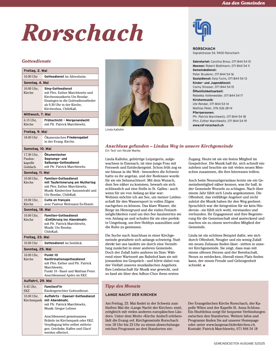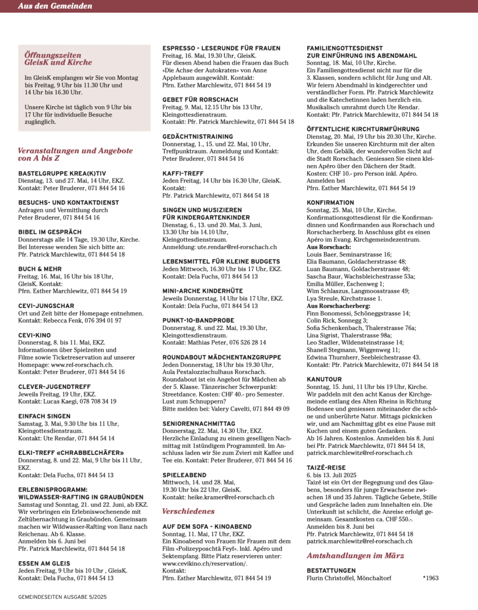 Oben der Hinweis für das eigentliche Highlight in diesem Monat (23. Mai 2025). Weitere Informationen rund um das breite Angebot der Evang.-ref. Kirchgemeinde Rorschach findet man immer auch hier, hier und hier. Und natürlich auf den Bildschirmen beim Stadtbahnhof.