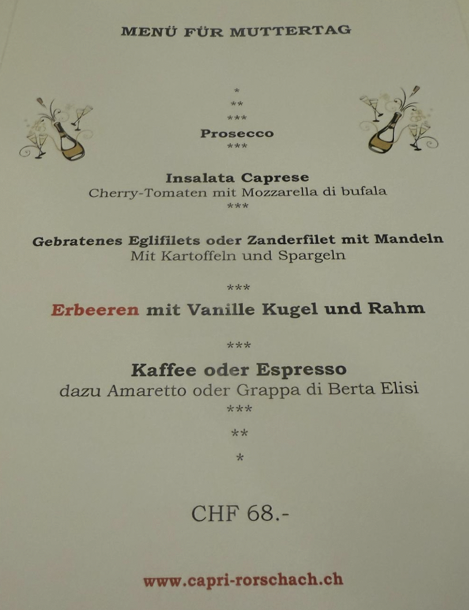 Auch die Gastronomie in der Stadt ist parat für den Muttertag. Hier nur eine ganz kleine Auswahl: