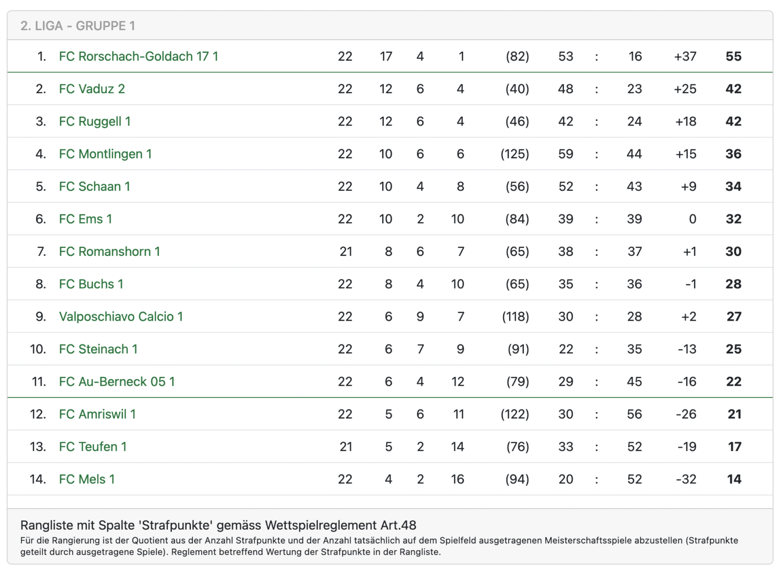 Nachdem Verfolger Vaduz heute Nachmittag sein Heimspiel gegen Amriswil mit 2:3 verloren hat ist das Team von Trainer Marc Blumer nicht mehr von der Tabellenspitze zu verdrängen. Es sind noch 12 Punkte zu vergeben und der FCRG17 hat satte 13 Punkte Vorsprung auf Vaduz. Das Rorschacher Echo stellt sich in die lange Reihe der Gratulanten.