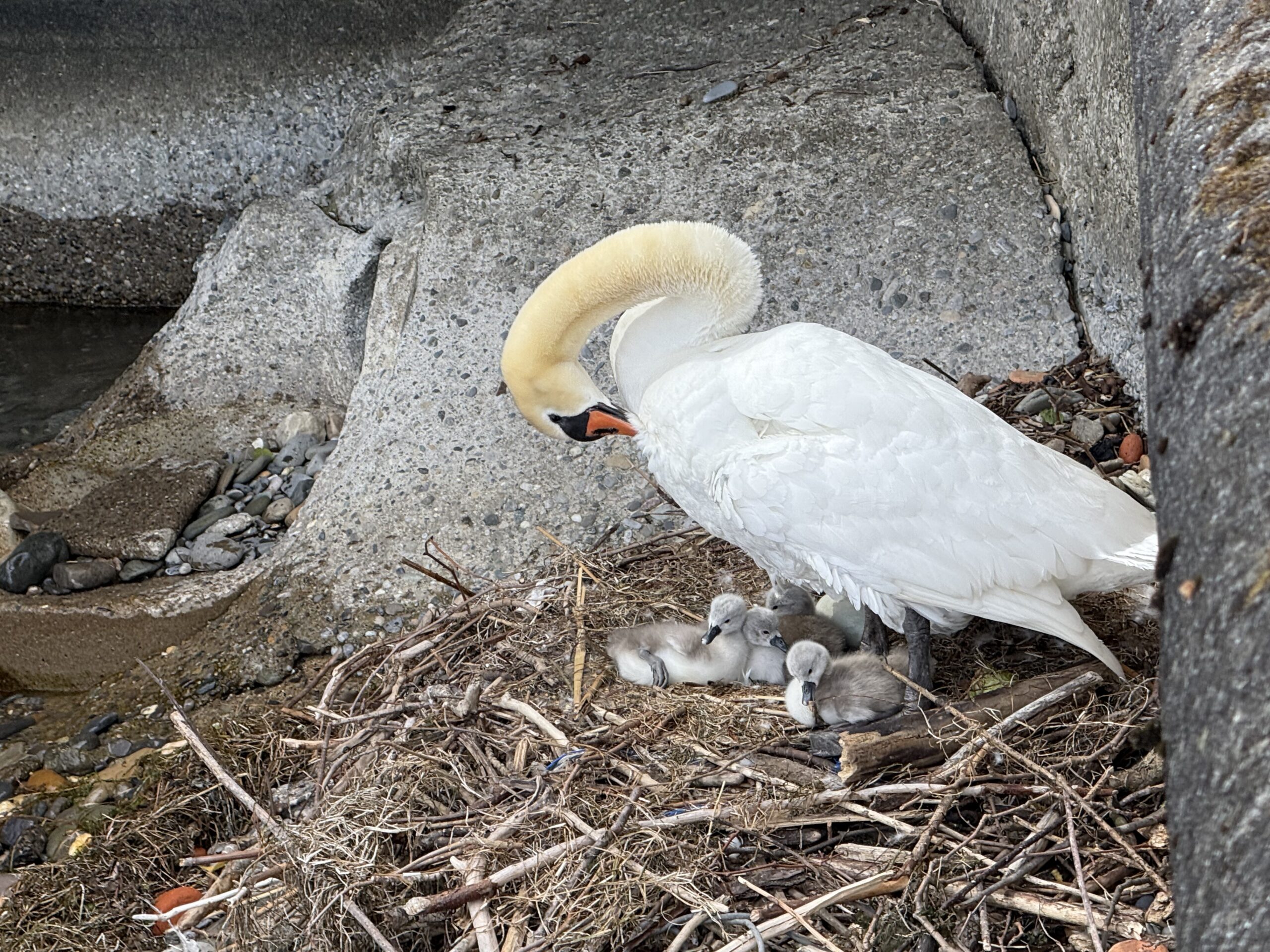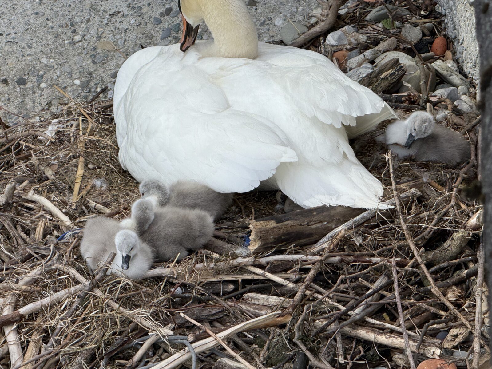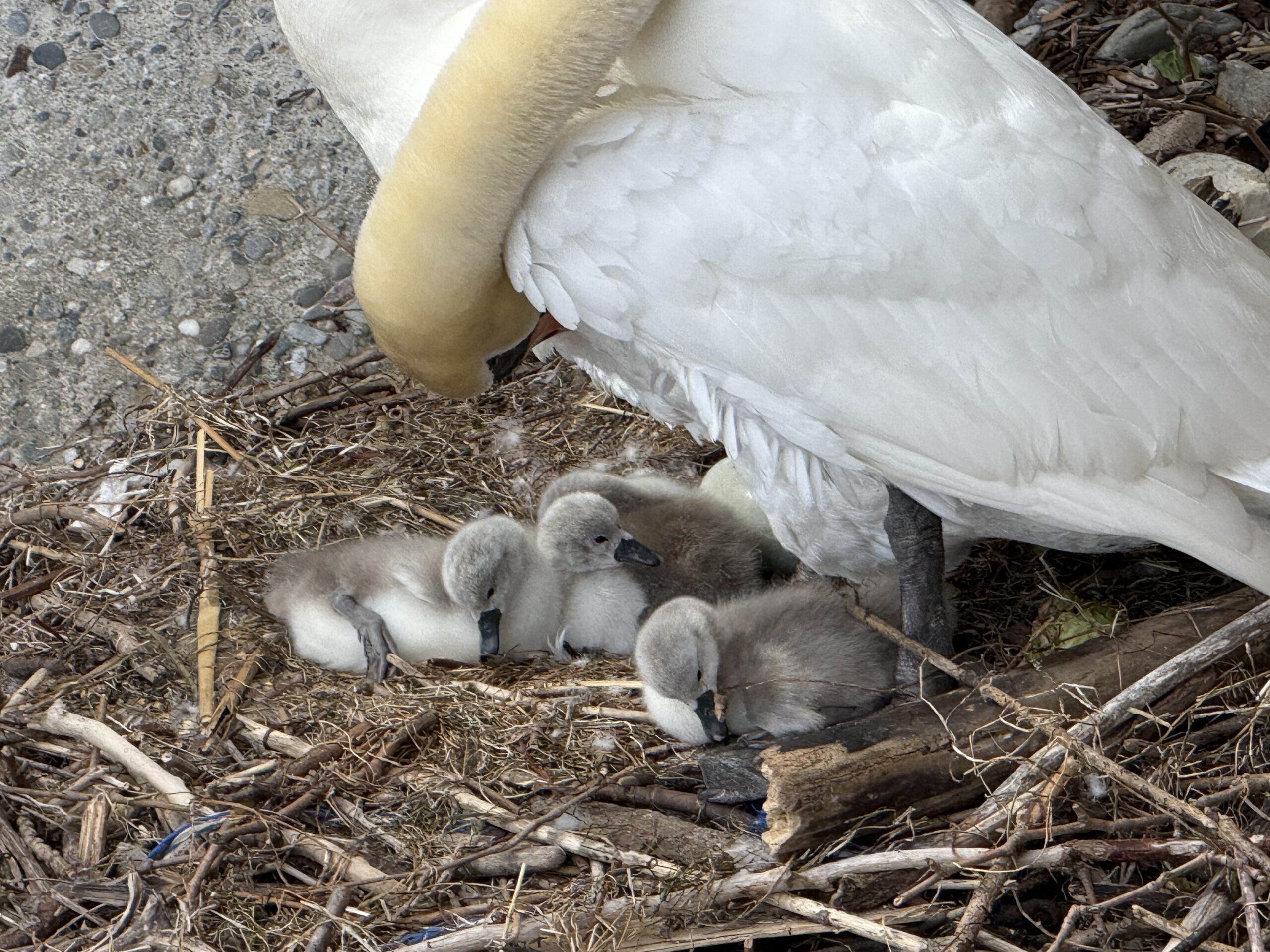 Wie das Rorschacher Echo bereits gestern Mittag berichtete, sind im Schwanennest beim Seerestaurant 4 Schwänlein geschlüpft. Die hier gezeigten Bilder und Videos wurden gestern Nachmittag so um 16 Uhr aufgenommen. Heute wird geschaut, ob das 5. Schwänlein auch noch etwas Rorschacher Seeluft schnuppern will…