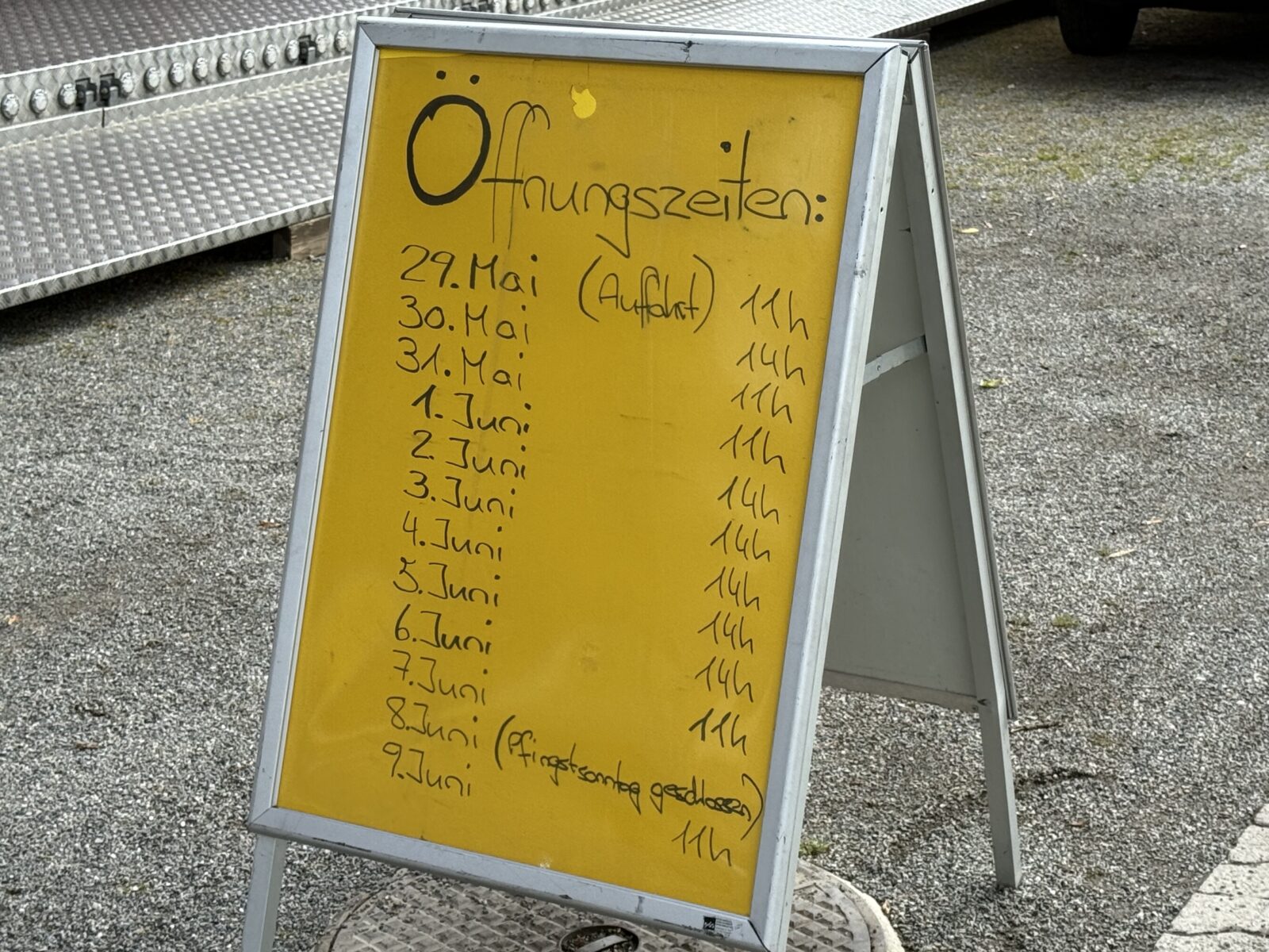 Die Öffnungszeiten (heute Freitag ab 14 Uhr, am Wochenende ab 11 Uhr):