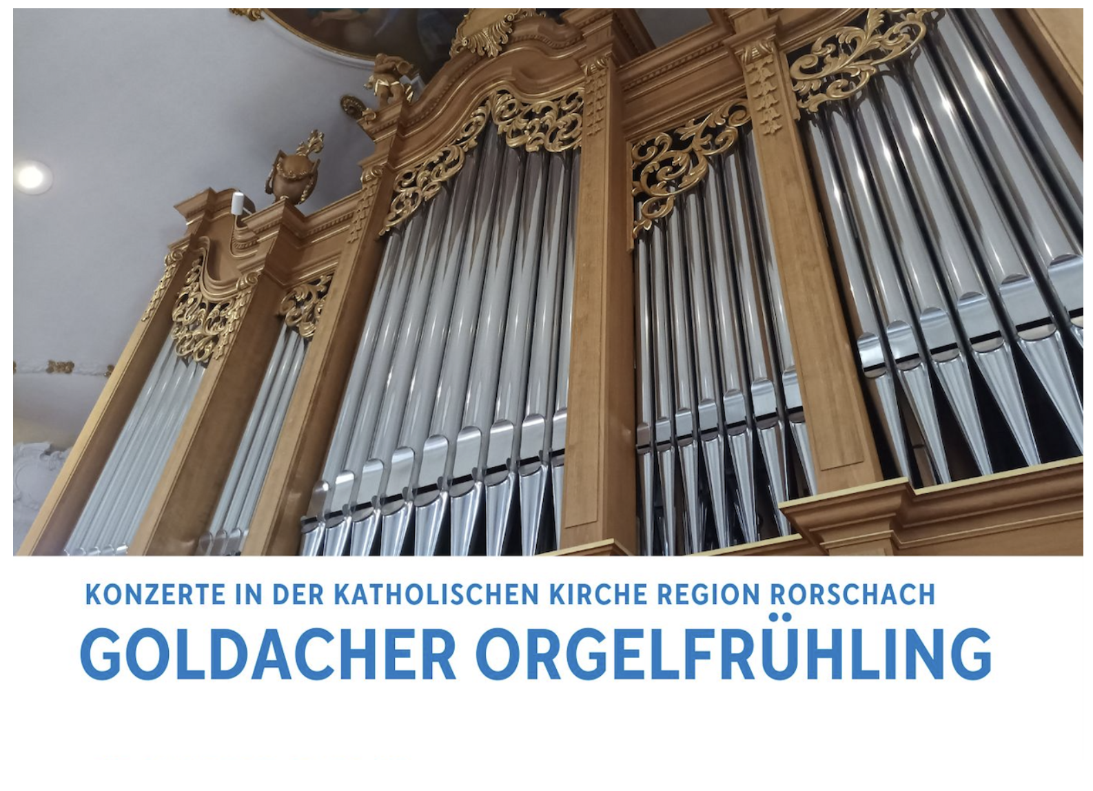 Heute Konzert im Rahmen des Goldacher OrgelfrühlingsThemen:GoldachKath. RorschachKulturPartner 1. Juni 2025 - 05:15Und zwar um 19 Uhr in der Katholischen Kirche in Goldach. Details für das zweite Konzert von heute Sonntag, 1. Juni 2025, findet man auf dem Flyer unten:Teilen mit: Einen Link per E-Mail an einen Freund senden (Wird in neuem Fenster geöffnet) E-Mail Drucken (Wird in neuem Fenster geöffnet) Drucken Auf Facebook teilen (Wird in neuem Fenster geöffnet) Facebook Auf X teilen (Wird in neuem Fenster geöffnet) X Auf WhatsApp teilen (Wird in neuem Fenster geöffnet) WhatsApp Gefällt mir:Gefällt mir Wird geladen …Newsletter abonnieren Bitte dieses Feld leer lassenBitte wähle, ob Du über jeden neuen Beitrag sofort oder lieber jeden Morgen gegen 9 Uhr eine Zusammenfassung der neusten Beiträge erhalten möchtest.Liste(n) auswählen: Neues vom Echo (Zusammenfassung) Neues vom Echo (Sofortbenachrichtigung) Dieses Feld wird benötigt.Prüfen Sie Ihren Posteingang und den Spamordner, um Ihr Abonnement zu bestätigen.