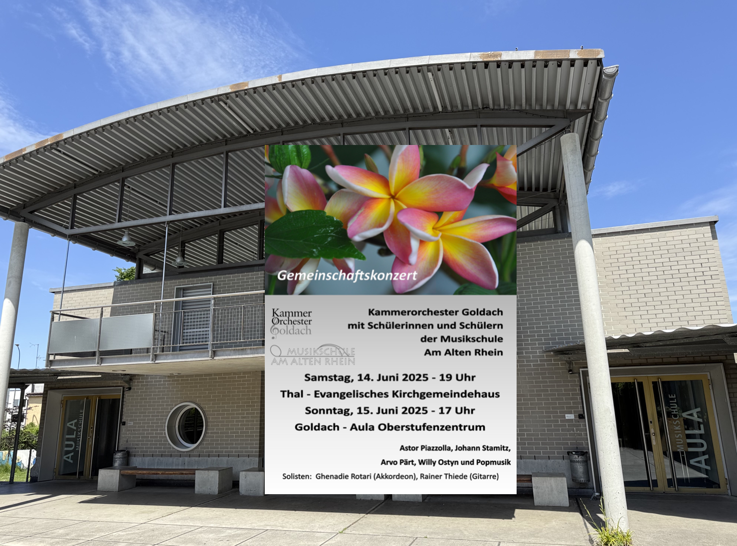 Musikschüler*innen und Lehrpersonen der Musikschule Am Alten Rhein musizieren gemeinsam mit dem Kammerorchester Goldach in zwei spannenden Konzerten in Thal und Goldach. Im Zentrum des Programms steht das mitreissende Konzert für Akkordeon, Gitarre und Orchester von Astor Piazzolla mit seinem südamerikanischen Flair. Die Soloparts übernehmen Ghenadie Rotari (Akkordeon) und Rainer Thiede (Gitarre).