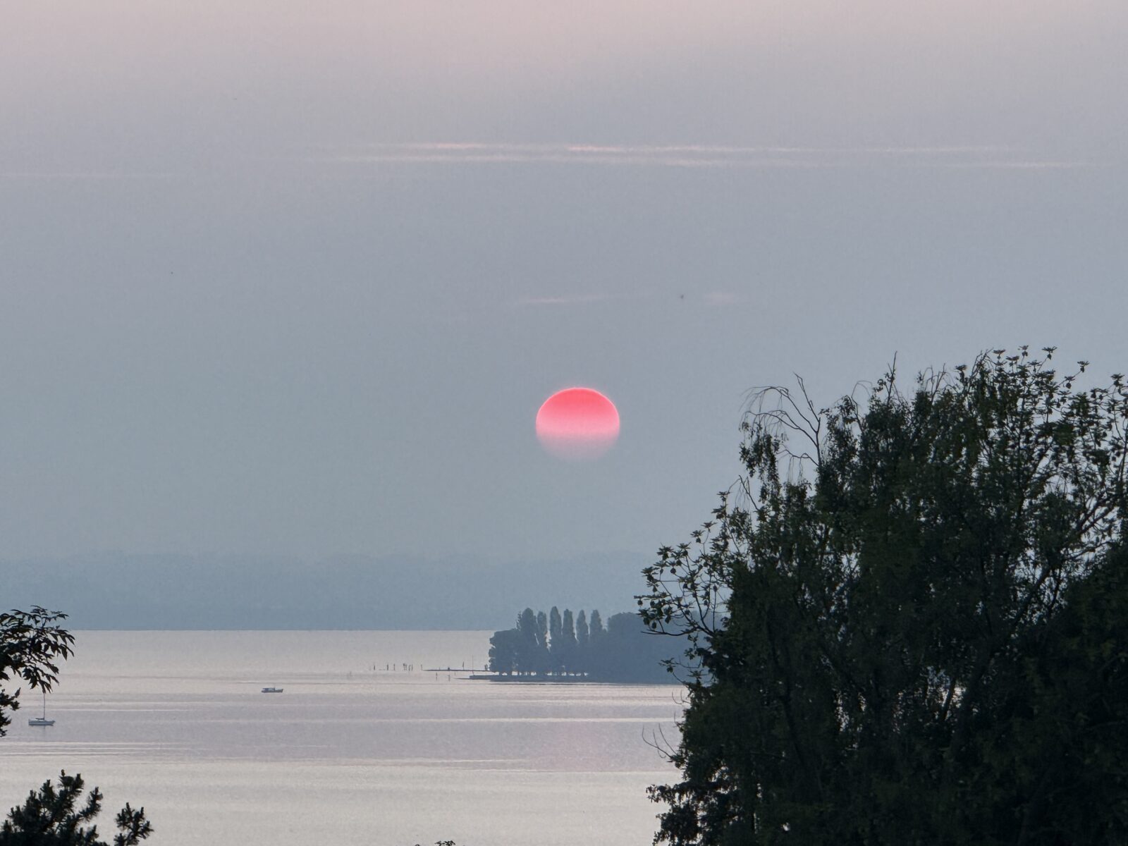 Die Zeichen stehen auf Sommer, auch wenn der Dunst (anscheinend hervorgerufen von den Waldbränden in Kanada…) den obtimalen Blick noch nicht ganz zulässt. Aber gestern hatten wir doch einen ganzen Tag ohne einen einzigen Regentropfen. Darauf lässt sich aufbauen. Hier Bilder von gestern Morgen: