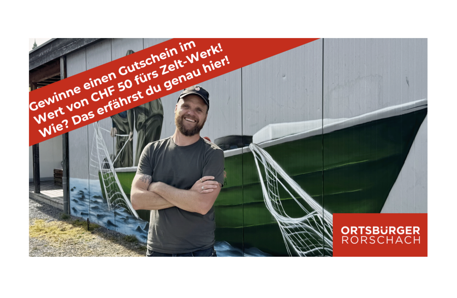 Zeig uns dein schönstes oder lustigstes Selfie vor unserer neuen Graffiti-Wand beim Zelt-Werk Rorschach! Mit etwas Glück gewinnst du einen 50-Franken-Gutschein fürs Zelt-Werk. Sponsor ist die Ortsbürgergemeinde Rorschach. Und wie machst du mit?
