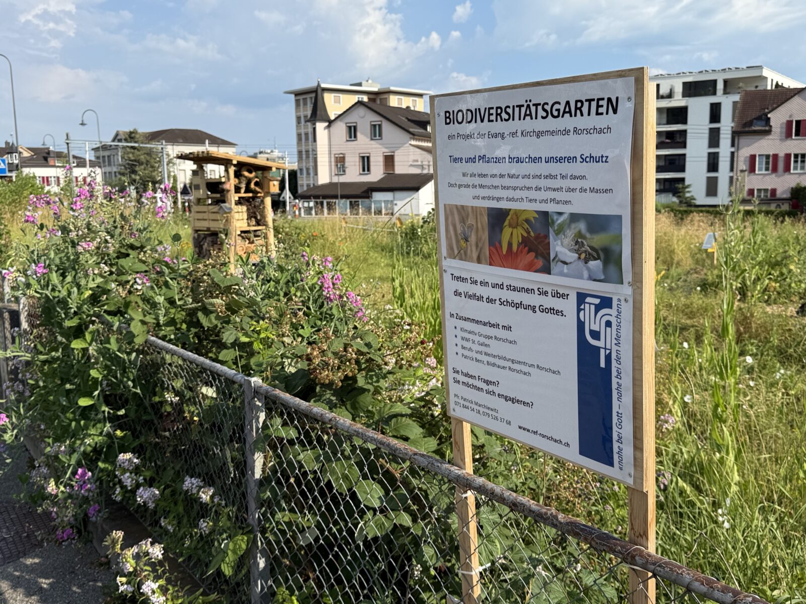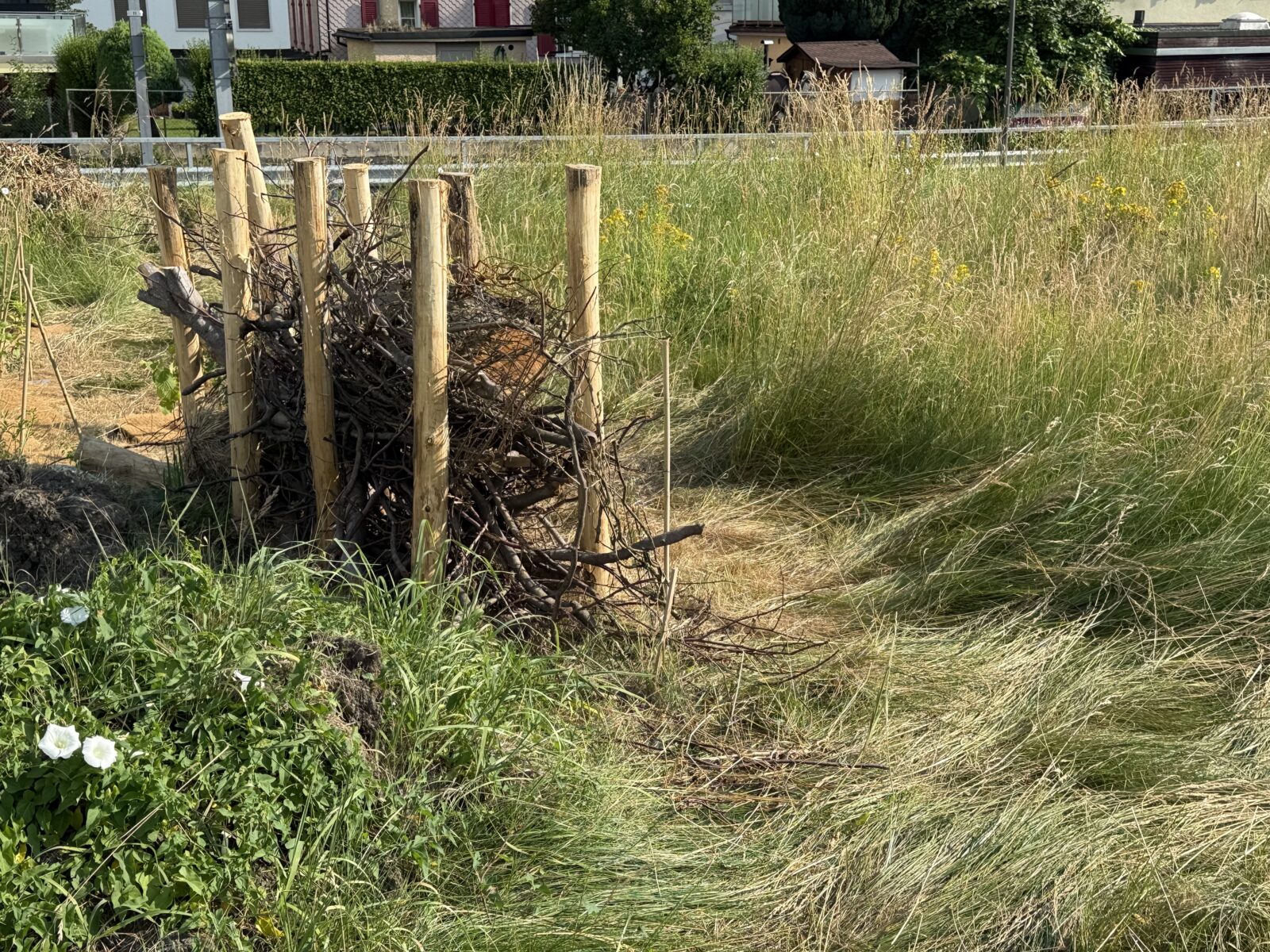 Am letzten Samstag haben sich einmal mehr die Mitglieder von „Klimaktiv“ Rorschach getroffen – für einmal deutlich mehr als sonst üblich. Markus Hartmeier infomrierte über all das, was rund um diesen „Pflanzblätz“ im Bereich Signal-, Eisenbahn- und Burghaldenstrasse alles passiert. Und da geht einiges. Das diesjährige Projekt der Berufsschule auf dem Areal ist mittlerweile abgeschlossen und für nächstes Jahr ist vorgesehen, dass die Berufsschüler einen Teich anlegen. Weitere Projekte wie Bäume, Ruderalfläche, inkl. Wildbienenlinse, Schmetterlingsgarten, Abfuhr Brombeerschnitt und Mähen werden an der nächsten Sitzung der AG Pflanzland (Ref. Kirche Rorschach & klimaktiv Rorschach, 8. September 2025) eingegeben. Die nächste Sitzung der Gruppe „klimaktiv Rorschach“ findet am Samstag, 20. September 2025, ab 09:30 Uhr im Gönndircafé an der Signalstrasse in Rorschach statt. Aktiviert hat diese Gruppe der Rorschacher Markus Hartmeier vor gut eineinhalb Jahren. Seine Thesen findet man hier. Interessierte sind immer herzlich eingeladen. Die hier gezeigten Fotos wurden gestern aufgenommen. Da ist etwas Grösseres am entstehen.