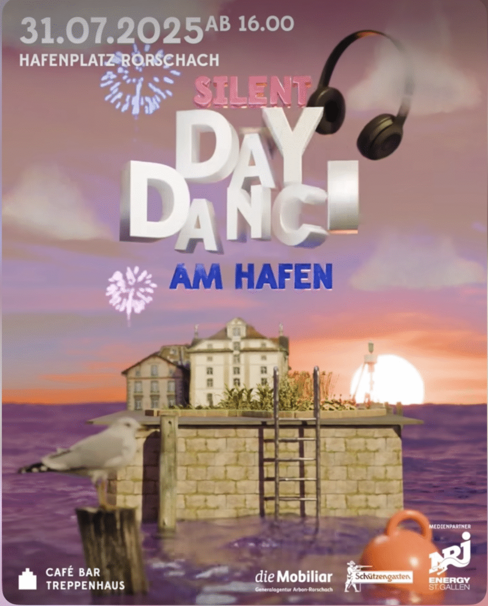 Silent DayDance gleich in doppelter AusführungThemen:BeizenKulturRorschachTreppenhaus 3. Juli 2025 - 05:25Mehr Infos zu diesen beliebten Treppi-Events findet man hier und hier.Teilen mit: Einen Link per E-Mail an einen Freund senden (Wird in neuem Fenster geöffnet) E-Mail Drucken (Wird in neuem Fenster geöffnet) Drucken Auf Facebook teilen (Wird in neuem Fenster geöffnet) Facebook Auf X teilen (Wird in neuem Fenster geöffnet) X Auf WhatsApp teilen (Wird in neuem Fenster geöffnet) WhatsApp Gefällt mir:Gefällt mir Wird geladen …Newsletter abonnieren Bitte dieses Feld leer lassenBitte wähle, ob Du über jeden neuen Beitrag sofort oder lieber jeden Morgen gegen 9 Uhr eine Zusammenfassung der neusten Beiträge erhalten möchtest.Liste(n) auswählen: Neues vom Echo (Zusammenfassung) Neues vom Echo (Sofortbenachrichtigung) Dieses Feld wird benötigt.Prüfen Sie Ihren Posteingang und den Spamordner, um Ihr Abonnement zu bestätigen.