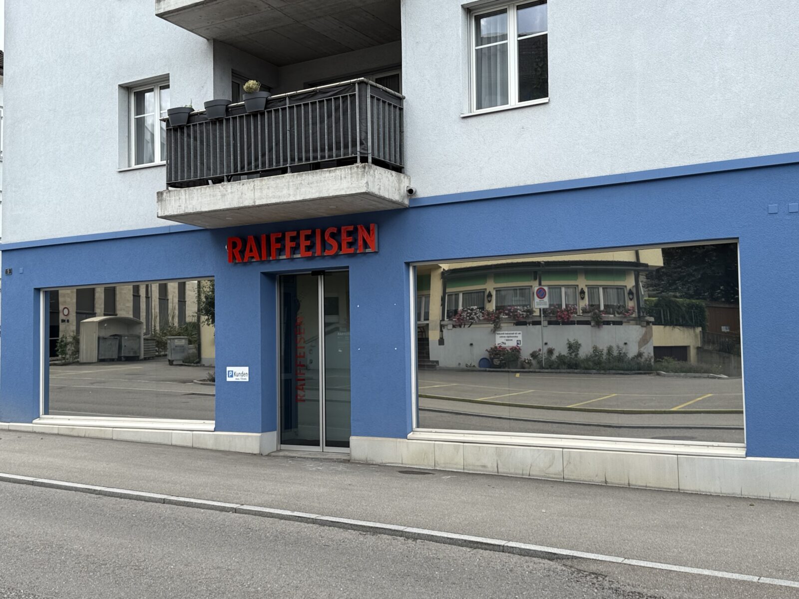 Blumenstrasse 5 in GoldachWährend der voraussichtlich rund zweijährigen Bauphase dürfen unsere Kundinnen und Kunden die Parkplätze der Pizzeria Mare Monte (vis-à-vis des Provisoriums) für ihren Bankbesuch benützen. Ein besonderer Dank gilt Toni Sinani, der uns verdankenswerterweise seine Parkplätze zur Verfügung stellt. Wir freuen uns, Sie weiterhin persönlich begrüssen zu dürfen.“