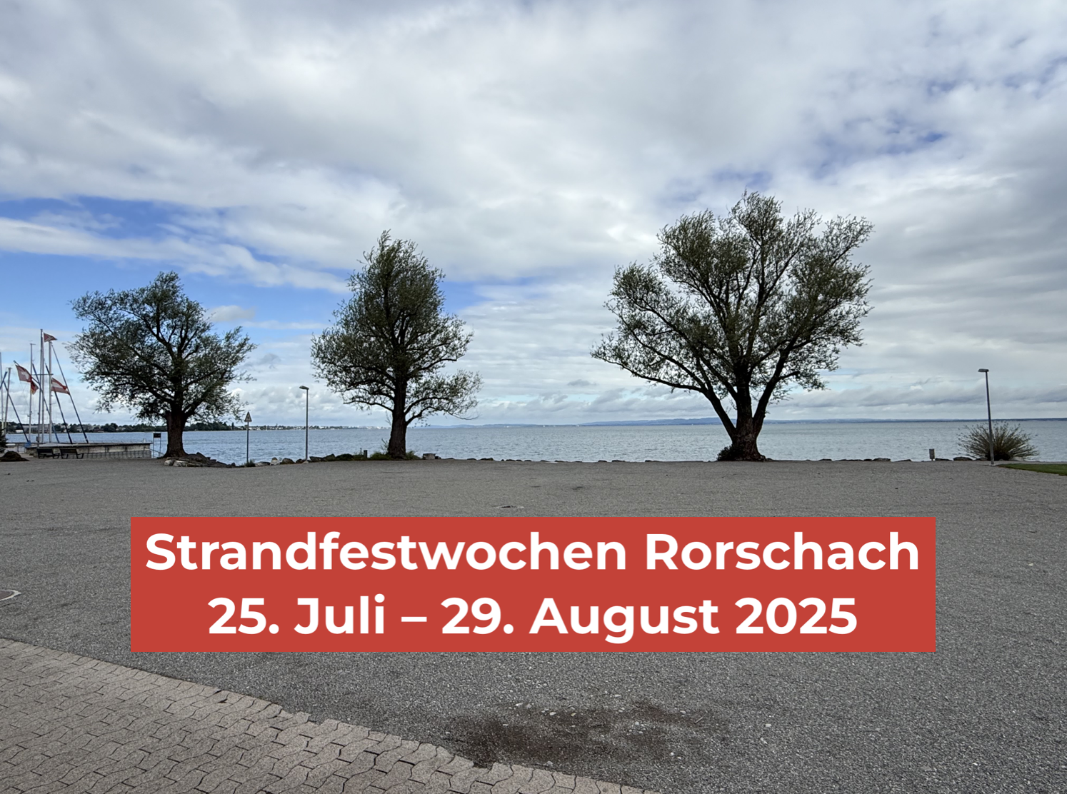 Ab kommendem Wochenende laufen auf dem Platz vor dem Rorschacher Yachthafen wieder die Strandfestwochen. Wenn es das Wetter zulässt wird am Freitag mit Hafenbar und Hafenbühne gestartet, ansonsten dann, wenn das Wetter auch mitspielt. Die Homepage gibt immer Auskunft darüber, was läuft. Auf die vielen Besucher:innen warten lauschige Abende, die schönsten Sonnenuntergänge, feine Konzerte und der eine oder andere frischgebackene Weltmeister. Das Rorschacher Echo wird die Strandfestwochen im Rahmen des Möglichen begleiten.