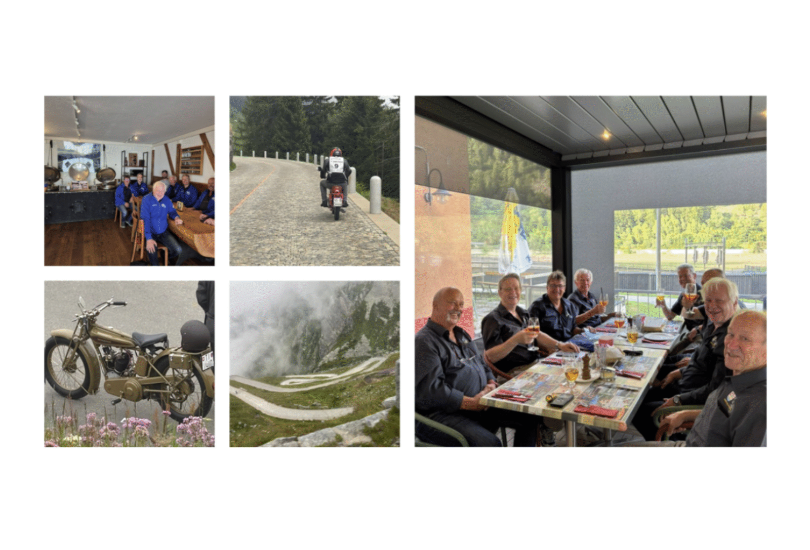 Am Sonntag beschlossen wir, den Rückweg über die Tremola zu nehmen. Für Werner, Thomas und mich war dies das erste Mal, dass wir auf dieser Strecke unterwegs waren. Es ist sehr eindrücklich wie die Strasse gebaut wurde und mit wieviel Aufwand sie in Stand gehalten wird. Zusätzlich fand noch ein Oldtimer Motorradrennen auf der Tremola statt. So konnten wir nicht nur die schöne Landschaft und das kulturelle Erbe, sondern auch den einen oder anderen schönen Töff bewundern. Auf der Passhöhe gönnten wir uns in der Militärkantine einen Kaffeeschnaps, während wir darauf warteten, dass sich der Nebel lichtete und sich die Sonne zeigt, was bald auch geschah. Die weitere Heimreise führte uns über den Oberalppass zurück auf die A13 bis nach Hause.