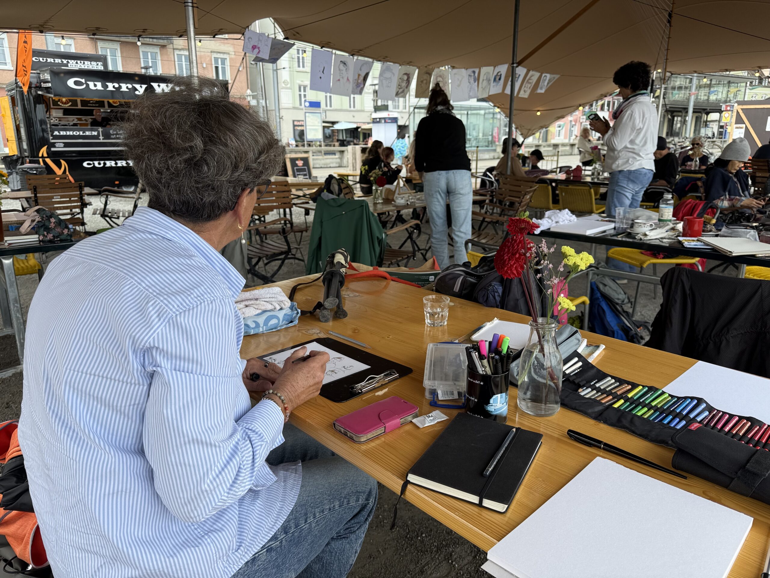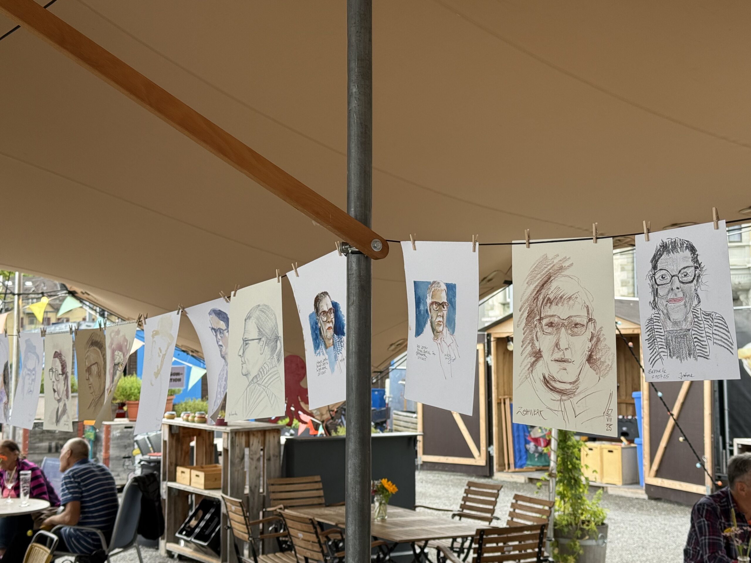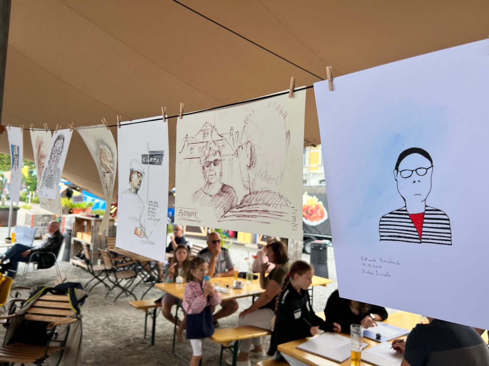 Verschiedene Urban Sketchers porträtierten gestern die Zelt-Werk-Gäste. Das sah dann in etwa so aus: