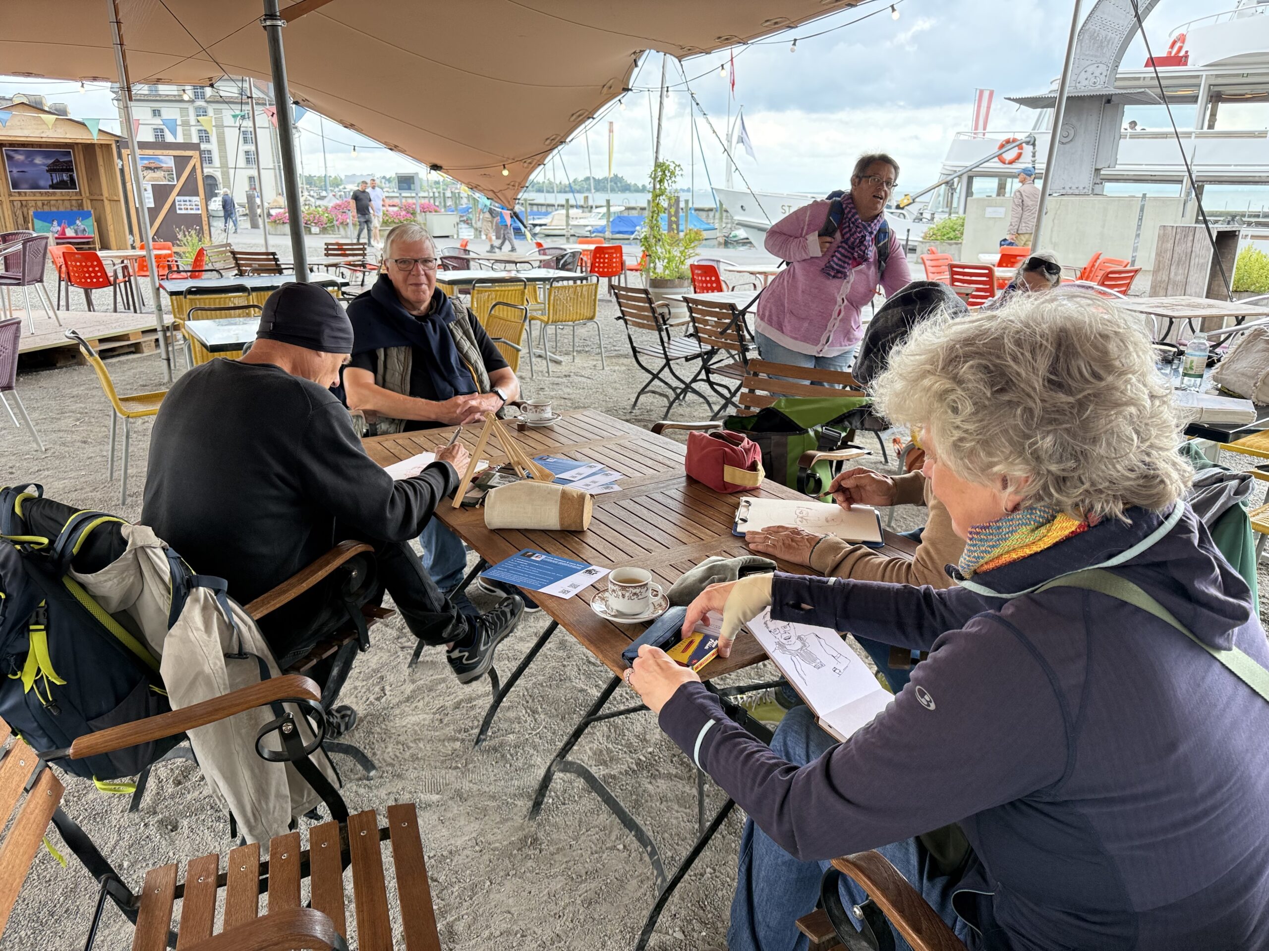 Mit dabei bei diesen Urban Sketchers (USk) ist der Rorschacher Lukas Mosimann, der zusammen mit Laura Sutter und vielen weiteren Zeichnerinnen und Zeichnern Teil einer weltweiten Gemeinschaft von Künstlern ist, die vor Ort einfach zeichnen, was sie gerade sehen. „Ihre Zeichnungen stellen eine Art visuellen Journalismus dar, der das Leben so zeigt, wie der Künstler es vor ihren Augen geschehen sehen“, heisst es auf einem Flyer.