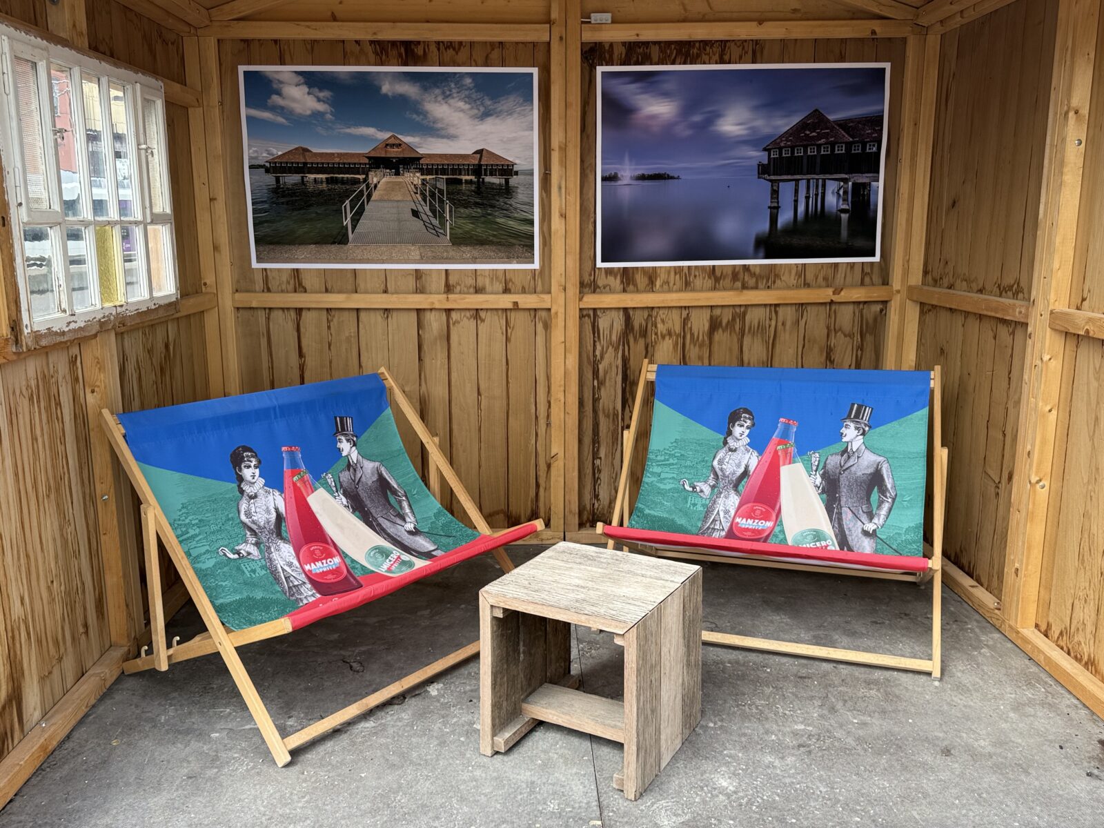 Apropos Badhütte: Die alte ist am 23. Dezember 2024 abgebrannt. Die bekommen wir so oder so nicht mehr zurück. Aber vielleicht eine ähnliche. Wer die alte Badhütte in Erinnerung behalten will wird hier fündig. Und bis Samstag auch noch im Zelt-Werk am Rorschacher Hafen.
