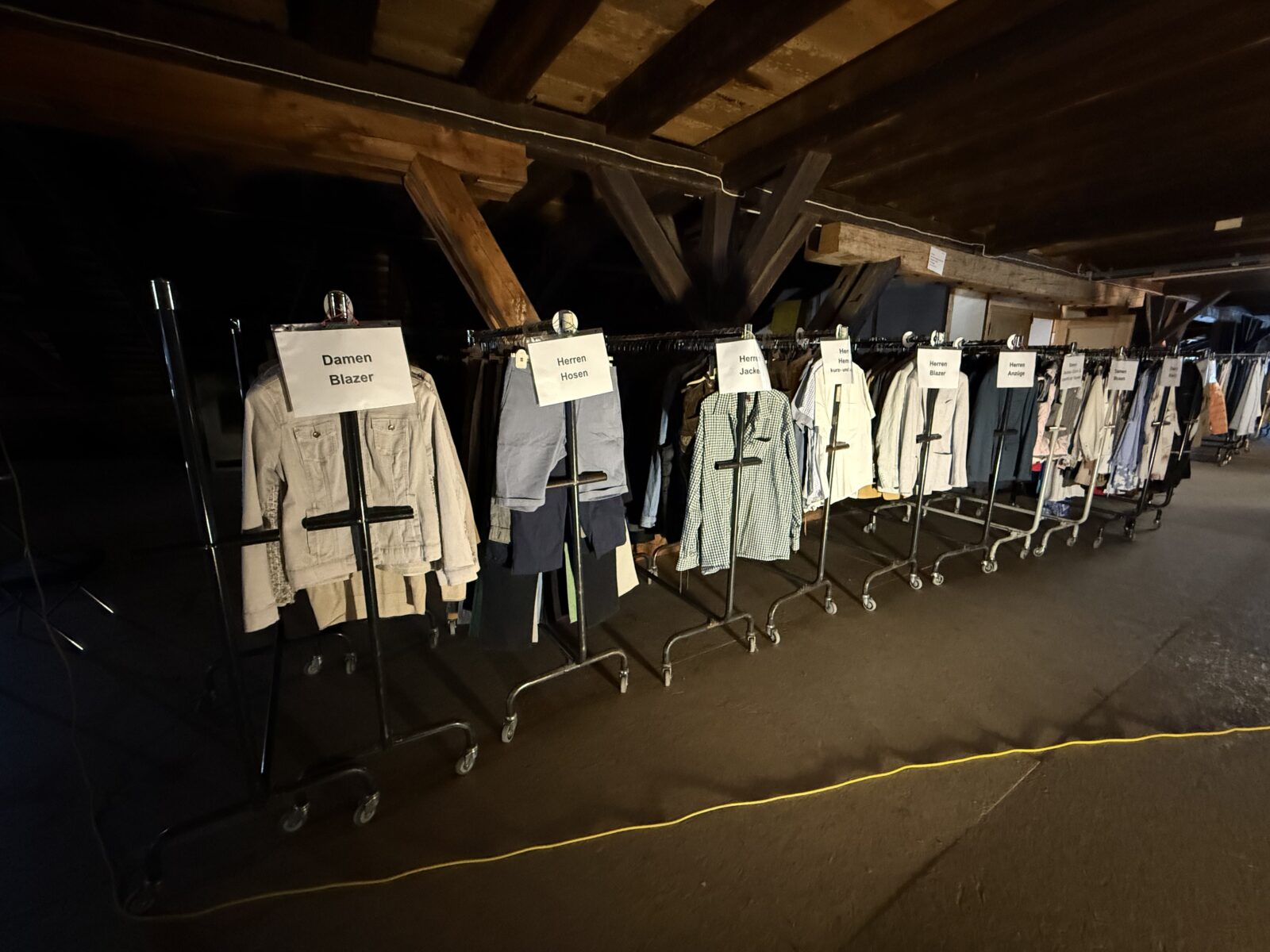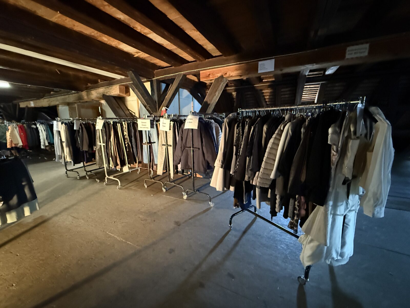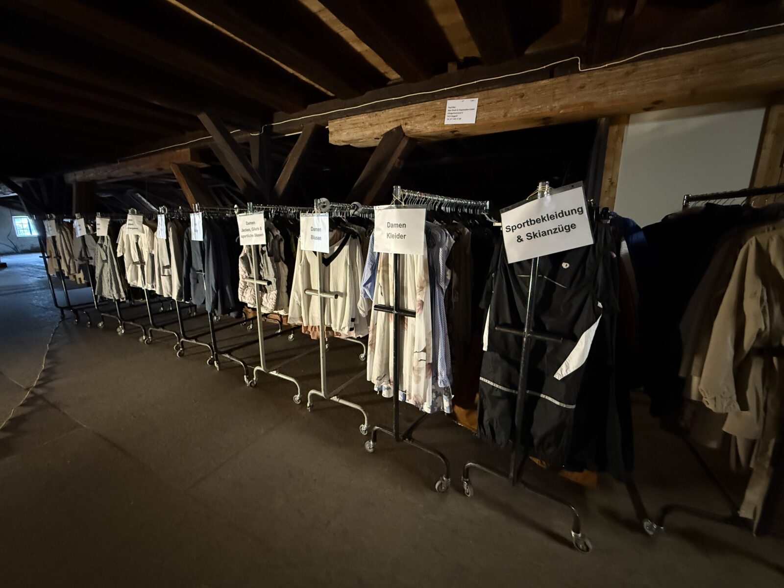 Heute ebenfalls am Flohmarkt vertreten ist der CF Rorschach. Hier Fotos von gestern Nachmittag. Sie zeigen, wie die CF Frauen im Kornhaus die Kleider für den heutigen Flohmi bereitgestellt haben. Ihren Stand findet man heute unmittelbar beim Pavillon-Kiosk. Insgesamt haben sie 23 Ständer vom C&A gefüllt mit Kleidern zur Auswahl und Heiri Kägi wird für sie zusätzlich vier Stände für Tshirts, Pullover, Schuhe, Taschen, Rucksäcke, Hüte, Schals etc. für Damen und Herren bereitstellen.