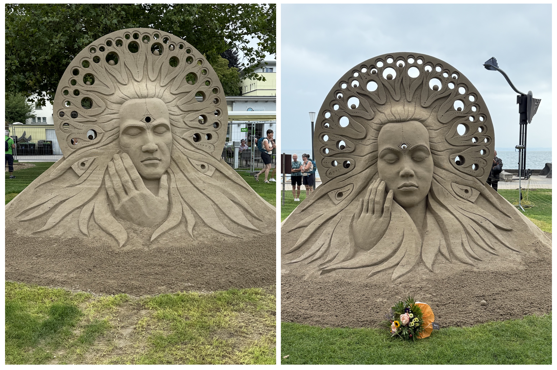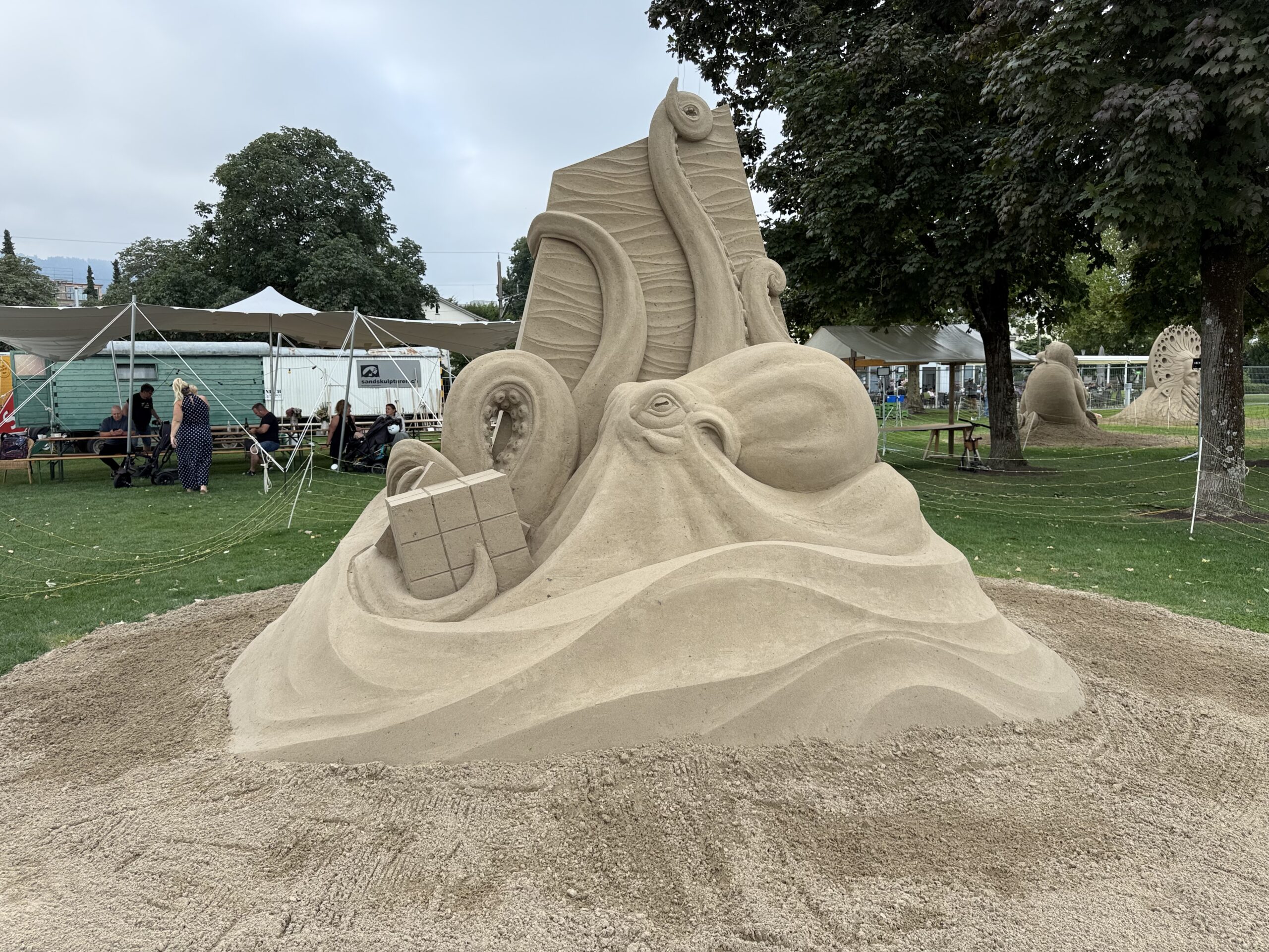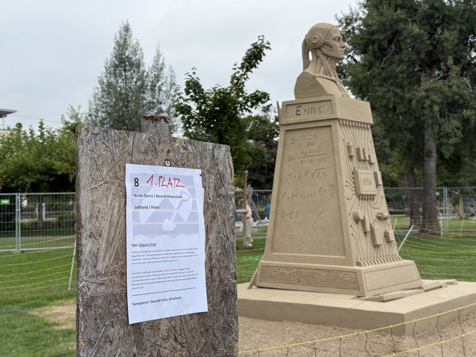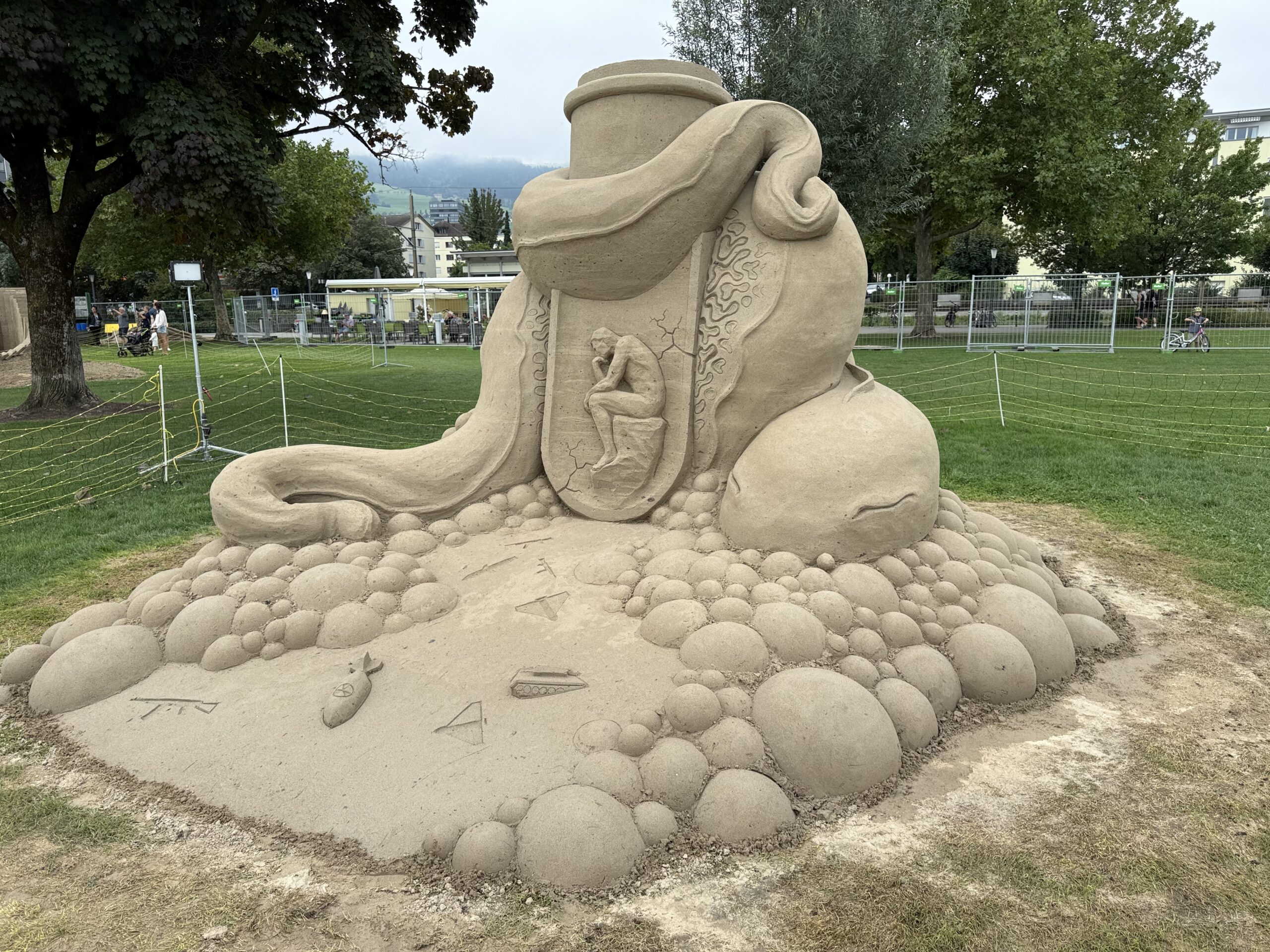 Jetzt stehen sie also in aller Pracht auf der Arionwiese in Rorschach, die neun wunderschönen Sandskulpturen. Was die vielen Künsterlinnen und Künstler da diese Woche geschaffen haben verdient viel Anerkennung. Die Jury hat gewertet. Hier nun die Skuplturen, wie sie sich heute Sonntagmorgen dem Volk präsentiert haben. Die sandigen Wunderwerke können bis am 7. September bestaunt werden.