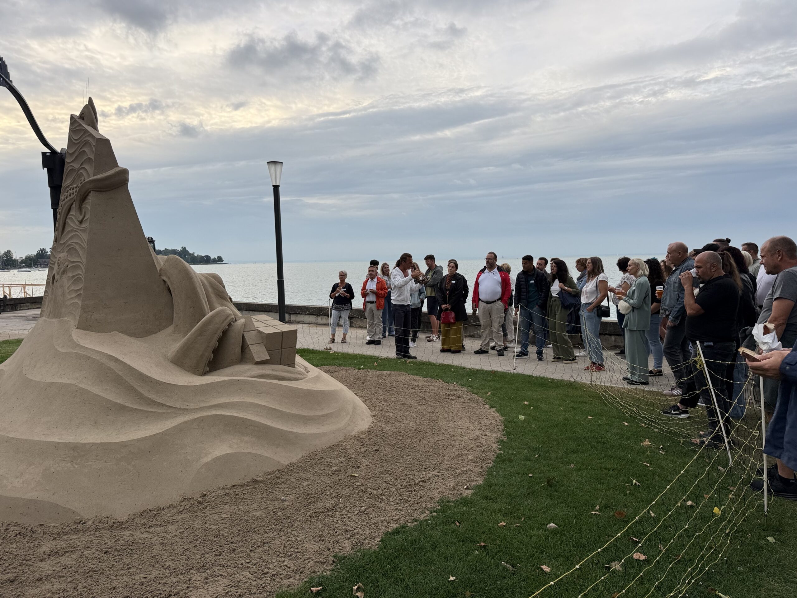 Gestern Abend hat die Stadt Rorschach die neu zugezogenen Rorschacherinnen und Rorschacher zu einem kleinen Willkommensanlass ins Sandskulpturen Festival auf die Arionwiese eingeladen. Stadtpräsident Röbi Raths durfte 126 Personen begrüssen, die sich dann auch noch von Festival-Leiter Urs Koller durch die Sandskulpturen führen liessen. Zudem haben einige Vereine die Chance genutzt, direkt vor Ort auf sich aufmerksam zu machen. Hier einige Schnappschüsse von gestern Abend.