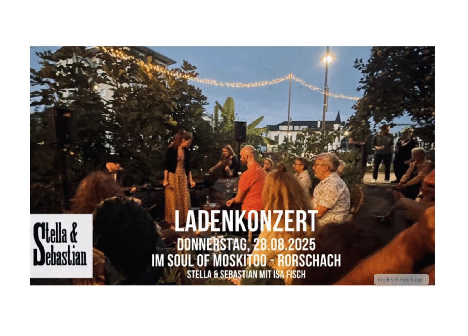 Zum zweiten Mal findet ein Ladenkonzert direkt beim Rorschach Stadt Bahnhof statt. Das Ostschweizer Liedermacher-Duo Stella & Sebastian wird von der Violinistin Isa Fisch begleitet. Zu hören heute Donnerstag, 28. August 2025, unmittelbar vor dem Soul of Moskitoo an der Löwenstrasse 1 in Rorschach sind Lieder aus den Genres Folk, Chanson und Singer Songwriter aus Eigenkompositionen. Eintritt ist frei – Kollekte. Vor einem Jahr bei der ersten Durchführung war das einer der schöneren Musikabende des ganzen Sommers! Und jetzt hoffen wir einfach, dass das Wetter irgendwie mitmacht. Und wenn nicht findet das Konzert einfach im Verkaufsladen statt. Und der hat ja auch seinen Reiz…