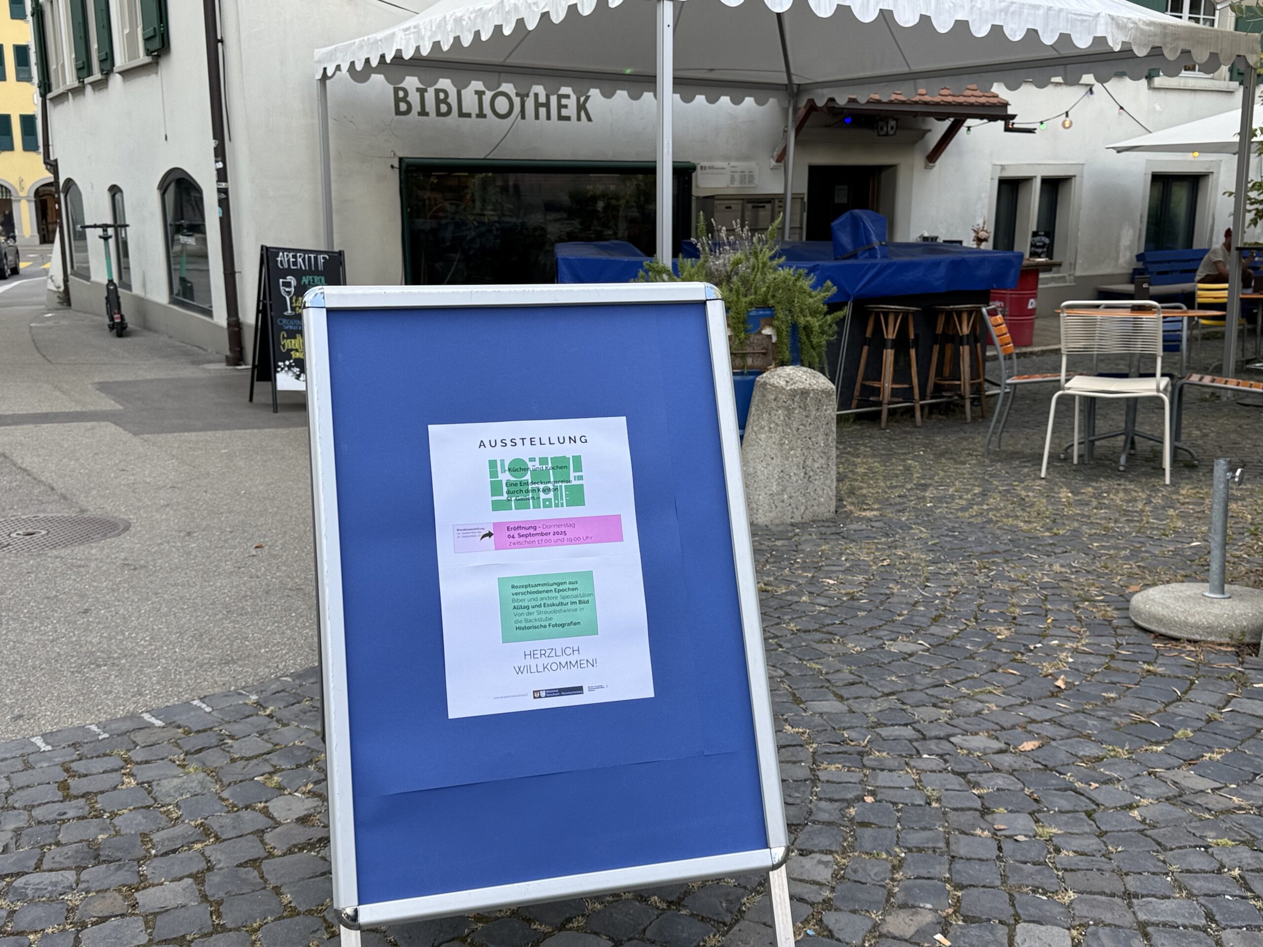 Gestern ist in der Bibliothek Rorschach-Rorschacherberg die Wanderausstellung «Küchen und Kochen» eröffnet worden und bietet Einblicke in das kulinarische Erbe des Kantons. Noch bis am 22. September 2025 gastiert die Wanderausstellung bei uns am See. Gestern stand dieser „Apfelfisch“ im Zentrum des Apéros, nachgebacken aus einem Originalrezept aus dem Jahre 1708, Da lohnt sich ein Besuch auf jeden Fall.