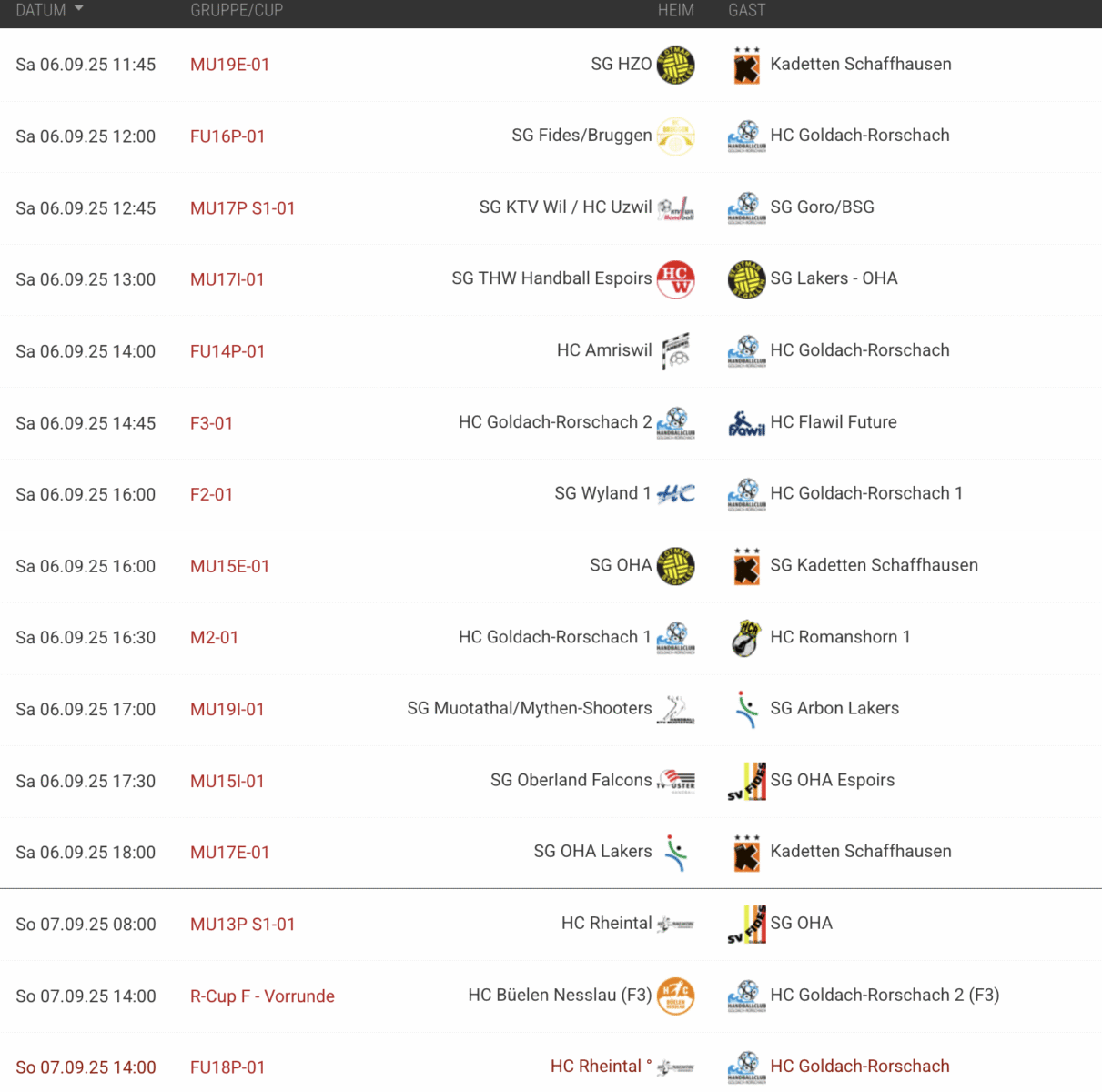 Hier alle Partien von diesem Wochenende mit HC GoRo-Beteiligung. Das Damen 1 (Beitragsbild) hat heute um 16 Uhr bei der SG Wyland anzutreten. Das Herren 1 startet heute um 16:30 Uhr mit dem Heimspiel in der Semihalle gegen den HC Romanshorn in die Saison.