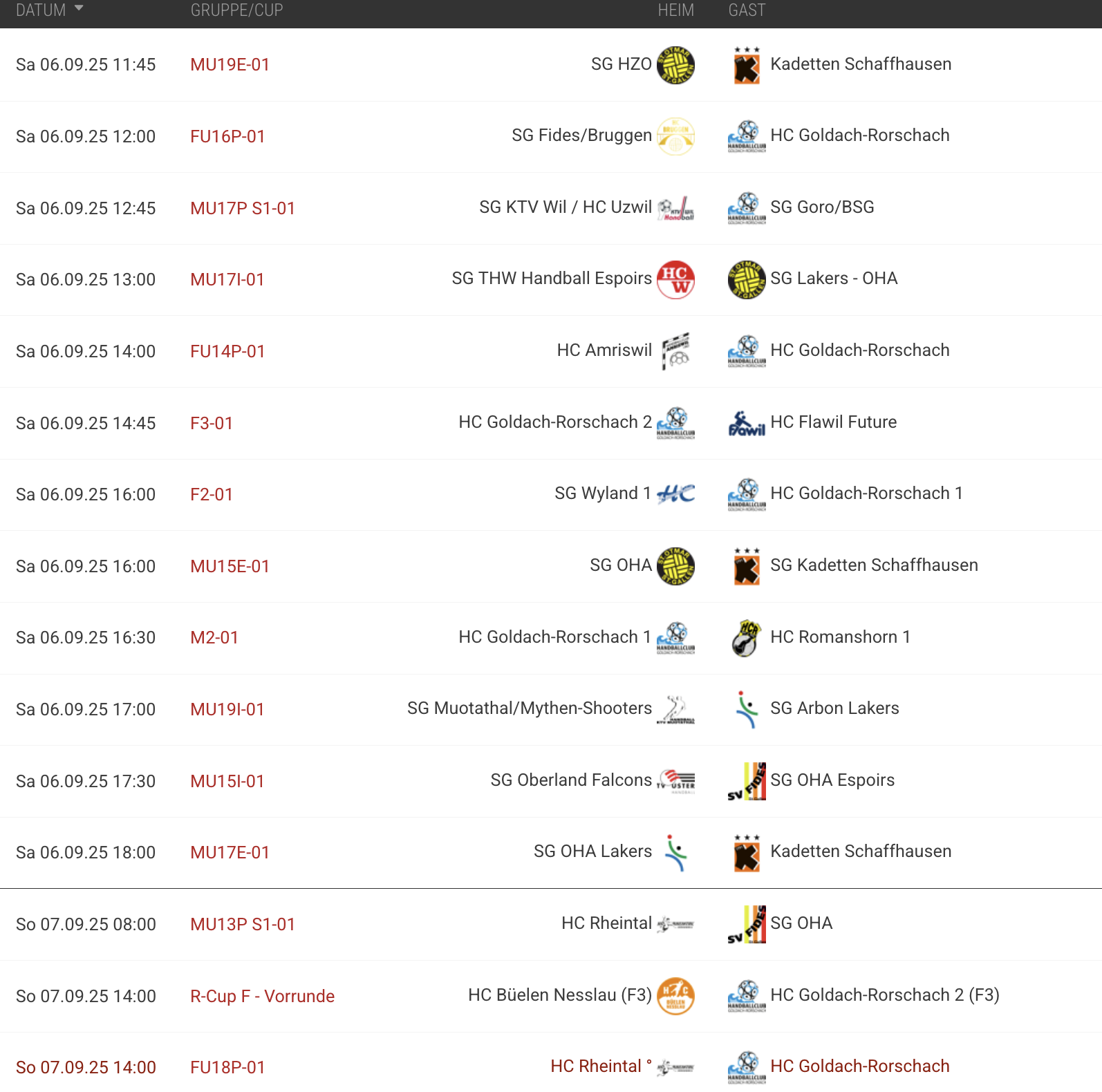 Hier alle Partien von diesem Wochenende mit HC GoRo-Beteiligung. Das Damen 1 (Beitragsbild) hat heute um 16 Uhr bei der SG Wyland anzutreten. Das Herren 1 startet heute um 16:30 Uhr mit dem Heimspiel in der Semihalle gegen den HC Romanshorn in die Saison.