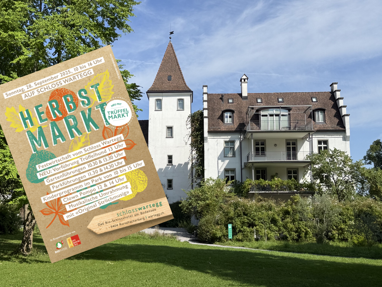 Dieser traditionelle Markt findet am Sonntag, 28. September 2025, ab 10 Uhr vor dem Schloss Wartegg in Rorschacherberg statt. Mehr Infos dazu findet man auf dem Flyer unten oder hier auf der Webseite.