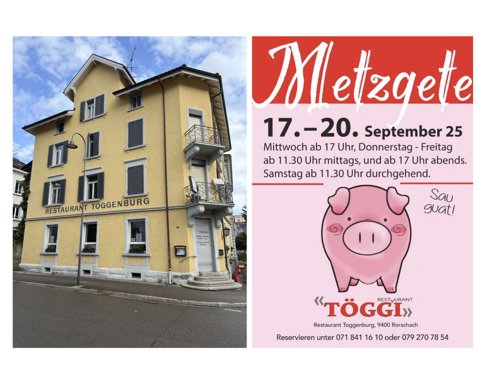 Ab Mittwoch bei Marianne im TöggiThemen:BeizenKulturRorschach 14. September 2025 - 05:10Wer nicht reserviert ist selber schuld… Und der nächste kulinarische Knaller ist auch schon in der Pipeline:Teilen mit: Einen Link per E-Mail an einen Freund senden (Wird in neuem Fenster geöffnet) E-Mail Drucken (Wird in neuem Fenster geöffnet) Drucken Auf Facebook teilen (Wird in neuem Fenster geöffnet) Facebook Auf X teilen (Wird in neuem Fenster geöffnet) X Auf WhatsApp teilen (Wird in neuem Fenster geöffnet) WhatsApp Gefällt mir:Gefällt mir Wird geladen …Newsletter abonnieren Bitte dieses Feld leer lassenBitte wähle, ob Du über jeden neuen Beitrag sofort oder lieber jeden Morgen gegen 9 Uhr eine Zusammenfassung der neusten Beiträge erhalten möchtest.Liste(n) auswählen: Neues vom Echo (Zusammenfassung) Neues vom Echo (Sofortbenachrichtigung) Dieses Feld wird benötigt.Prüfen Sie Ihren Posteingang und den Spamordner, um Ihr Abonnement zu bestätigen.