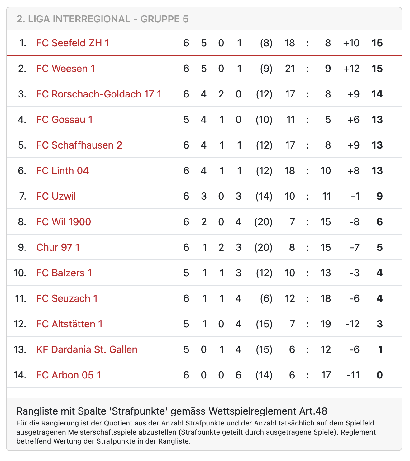 Nach dem gestrigen 2:4 Erfolg des FC Rorschach-Goldach 17 bei der KF Dardania St.Gallen belegt das Team Platz 3 der Tabelle und ist weiterhin ungeschlagen. Kommenden Samstag kommt Leader Seefeld ZH auf Kellen. Ein weiteres Spitzenspiel mit FCRG17-Beteiligung. Wer hätte das zu Saisonbeginn gedacht…