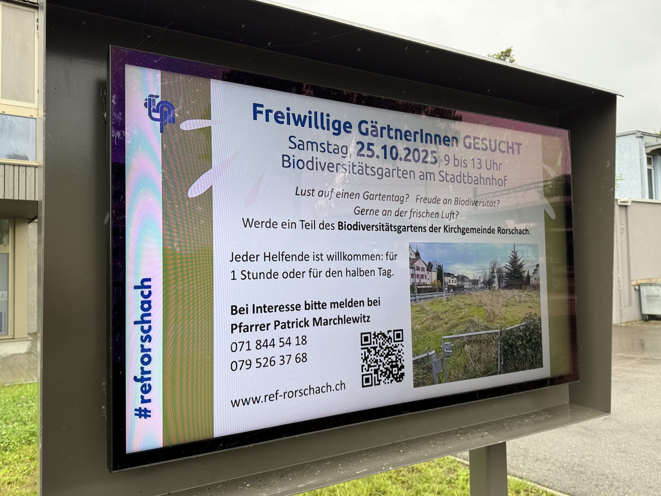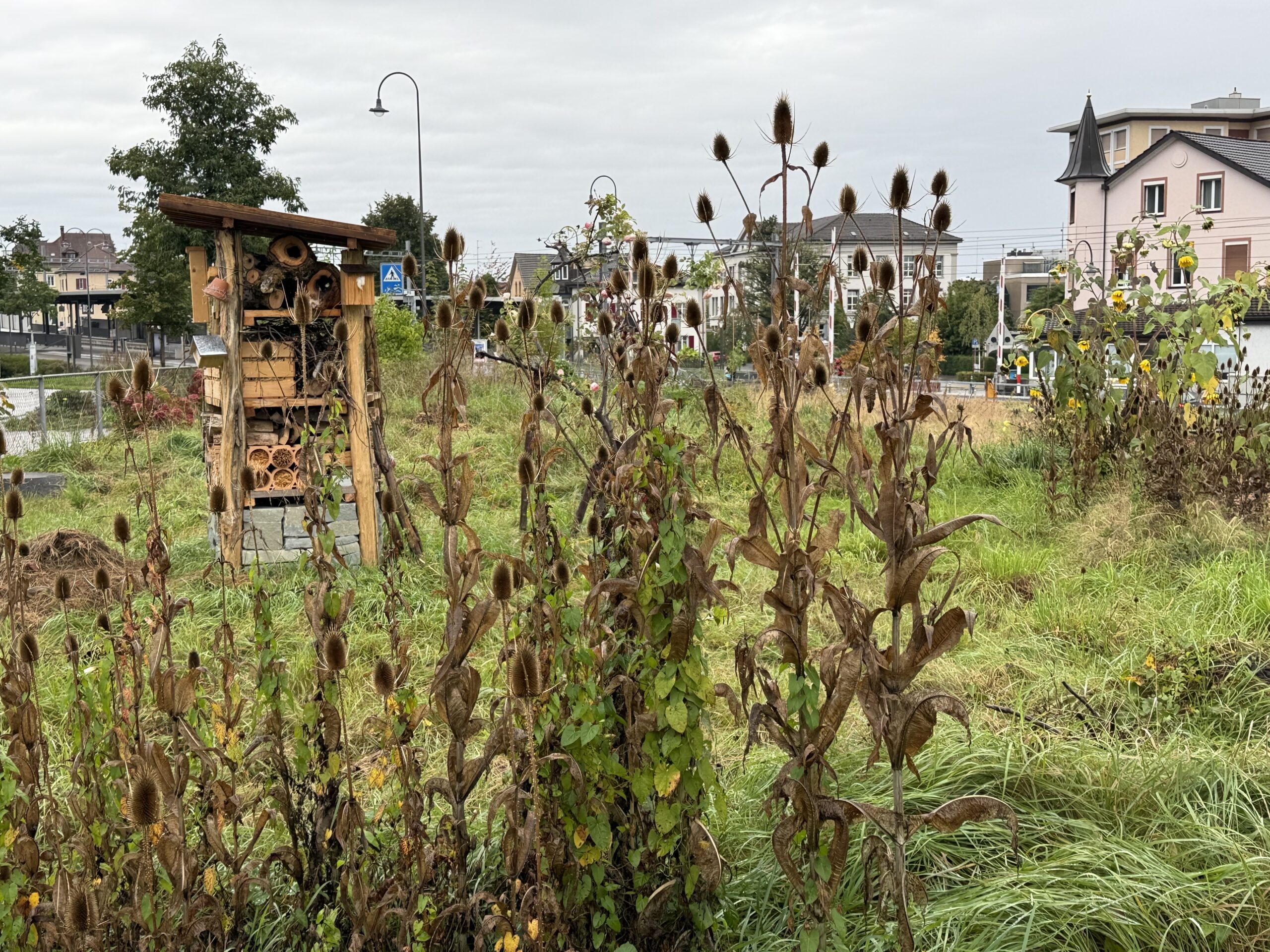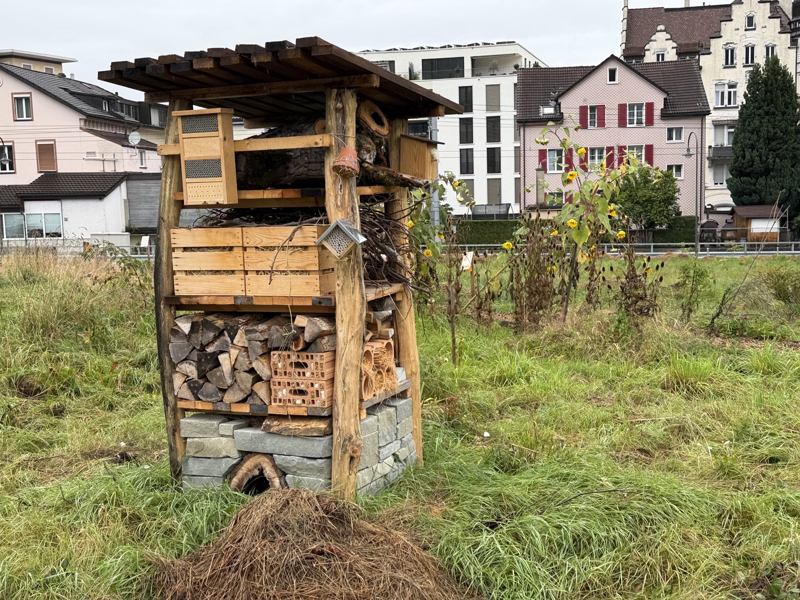 Die Gruppe „klimaktiv Rorschach“ ist weiterhin sehr aktiv unterwegs und nach wie vor herrscht emsiges Treiben rund um den Biodiversitätsgarten an der Ecke zwischen Eisenbahn-, Promenaden- und Signalstrasse. Und natürlich findet man auch auf diesem Areal einen Lebensturm.