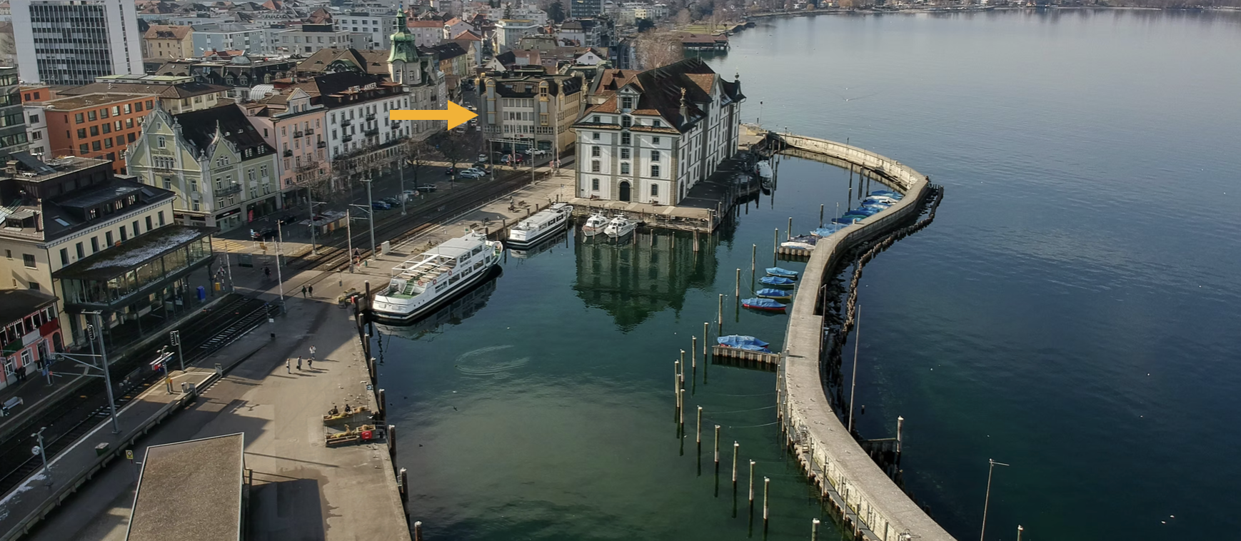 PORT78 befindet sich direkt beim Hafenbahnhof Rorschach und wenige Schritte vom Bodensee entfernt. Restaurants, Cafés und das Stadtzentrum liegen in unmittelbarer Nähe. Die Liegenschaft bietet damit kurze Wege und eine gute Erreichbarkeit für Mitarbeitende, Kunden und Geschäftspartner.