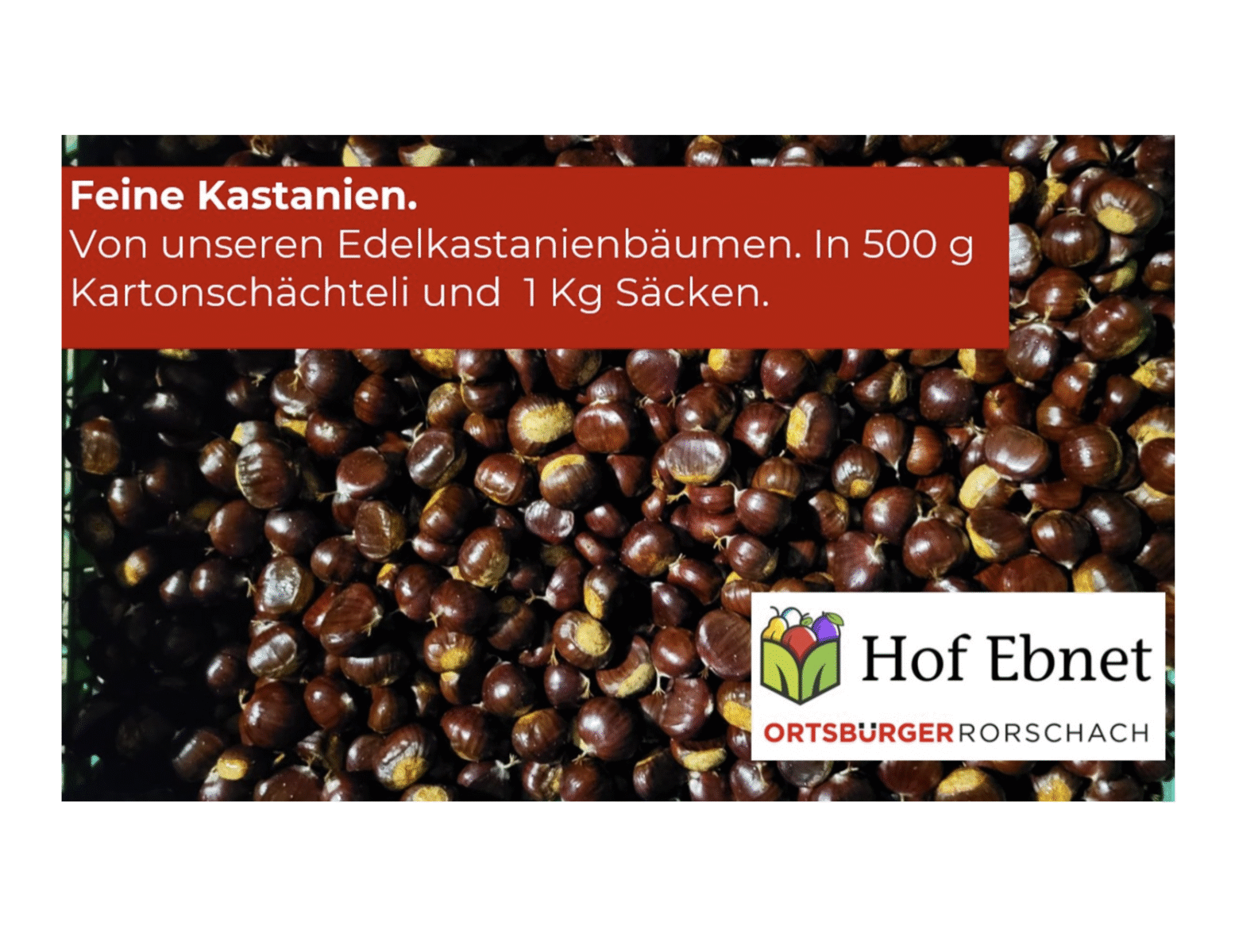 Es lohnt sich immer, beim Selbstbedienungslädeli von „Hof Ebnet“ der Ortsbürger Rorschach vorbeizuschauen. Jetzt erst recht: Es warten feine Kastanien auf uns!