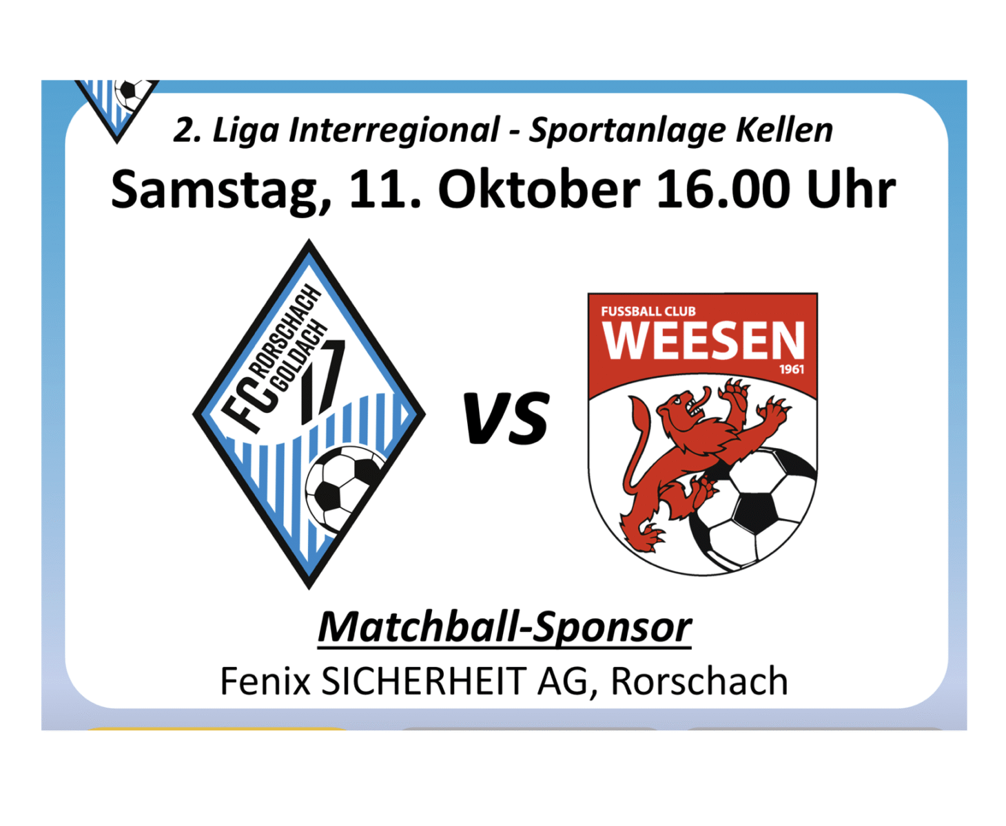Der FC Weesen schiesst zwar in jedem Spiel mindestens zwei Tore, hat jedoch mit 15 Gegentoren bereits vier Tore mehr kassiert, als der FC Rorschach-Goldach (11). Trotzdem haben die Einheimischen noch kein Spiel mit null Gegentoren beendet. Ein spannendes Spitzenspiel mit vielen Toren ist wohl zu erwarten.
