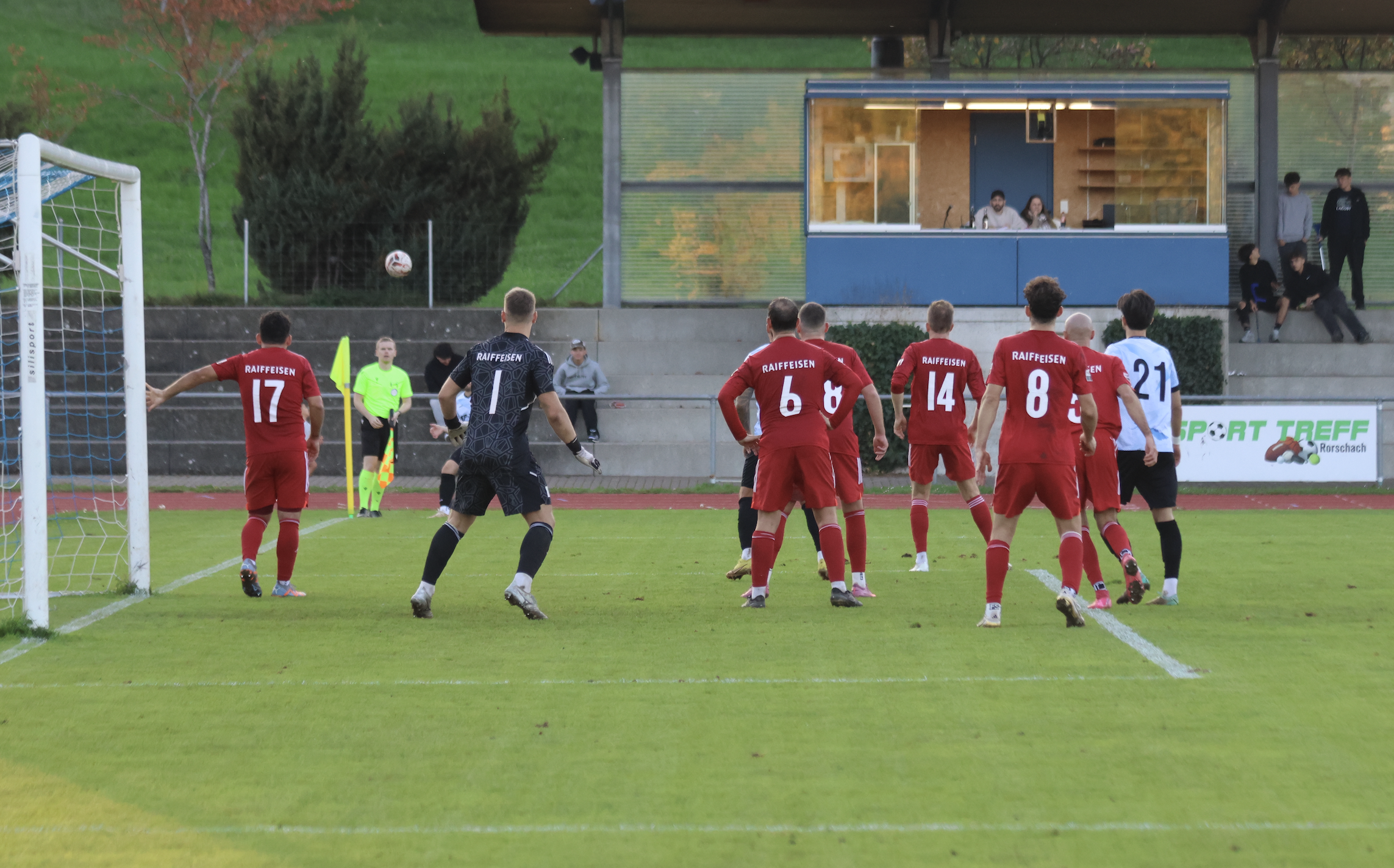 Rorschach-Goldach fand immer besser ins Spiel. Die Weesner blieben im kompakten Mittelfeld stets hängen. Auch brachten die weiten Einwürfe von Severin Schwendener in den Strafraum immer wieder Unruhe vor das Gästetor. Eine Kopie des Führungstores folgte nach 20 Minuten. Bereits wollte Matej Potokar zum zweiten Tor einschieben, als er noch von hinten durch einen Verteidiger gehindert wurde. Die Pfeife des Schiedsrichters blieb jedoch stumm…