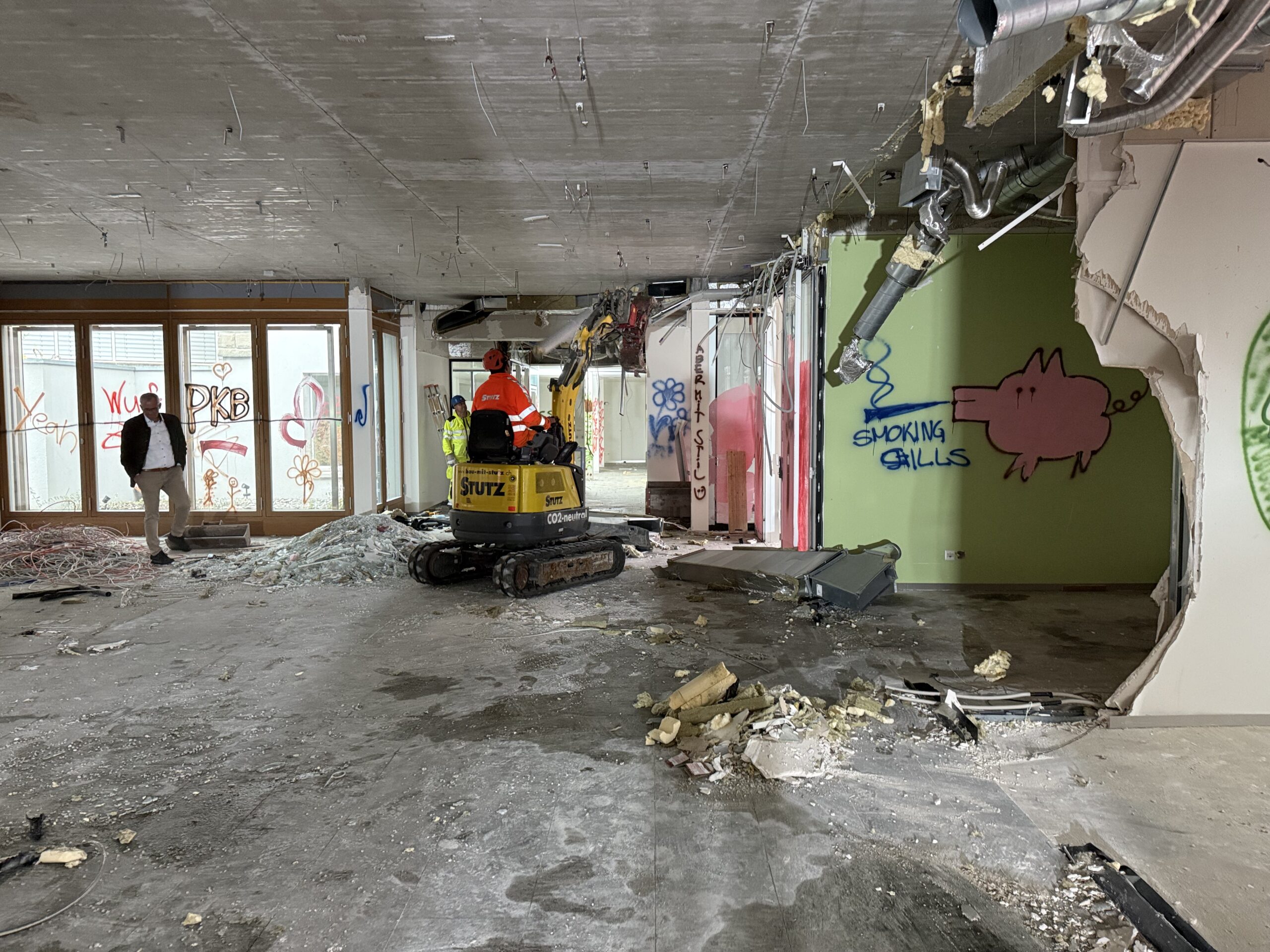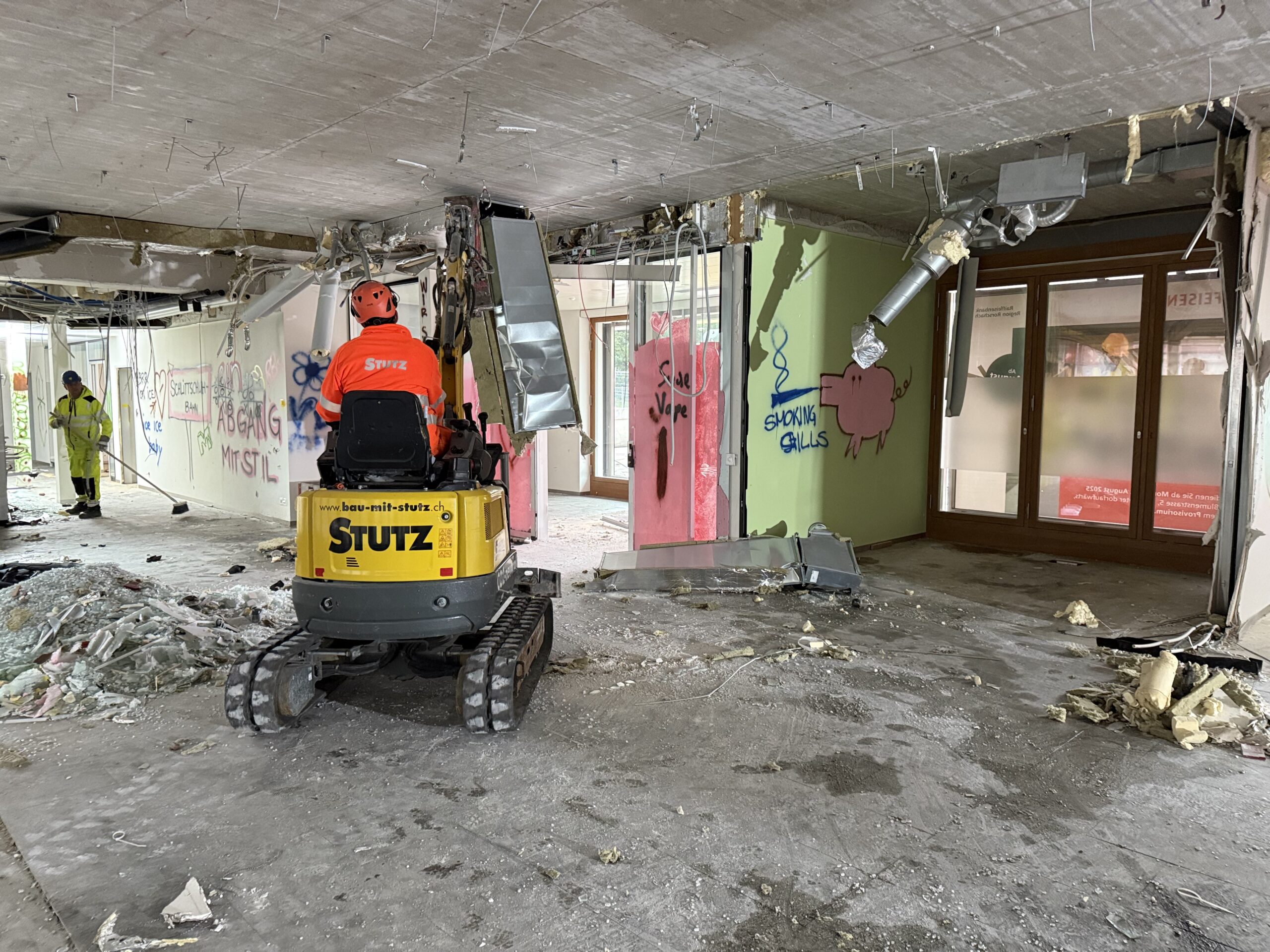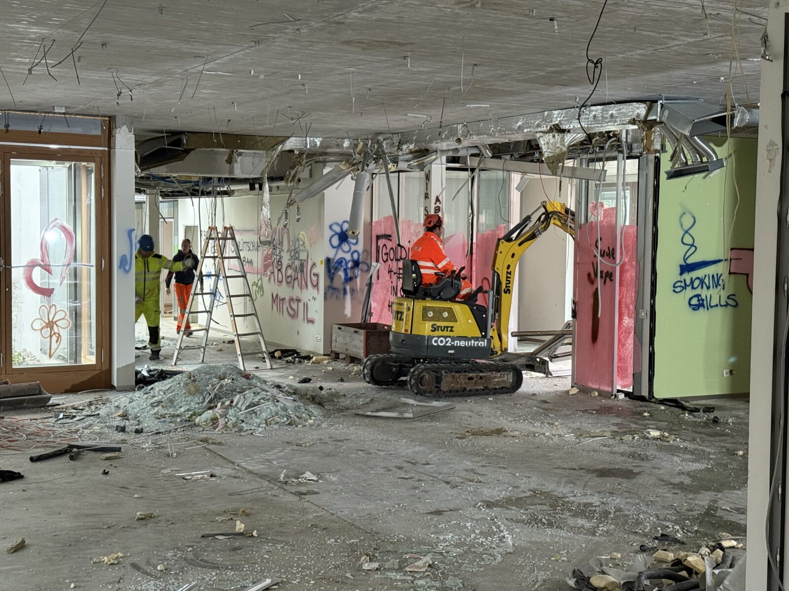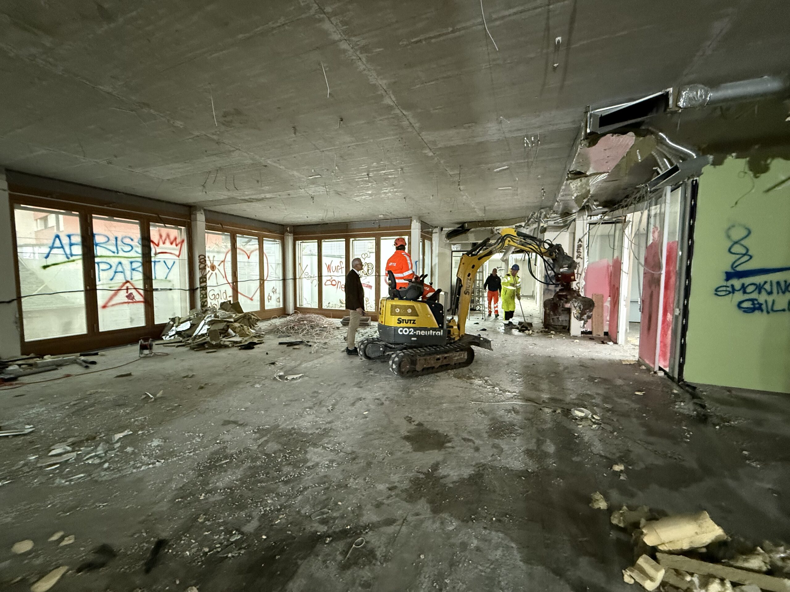 Auch wenn von aussen noch nicht viel sichtbar ist, wird innen schon wacker zurückgebaut. Das Rorschacher Echo konnte gestern in Begleitung mit dem Vorsitzenden der Bankleitung, Ernst Locher, einen kleinen Einblick ins Gebäudeinnere erhaschen. Hier einige Impressionen davon: