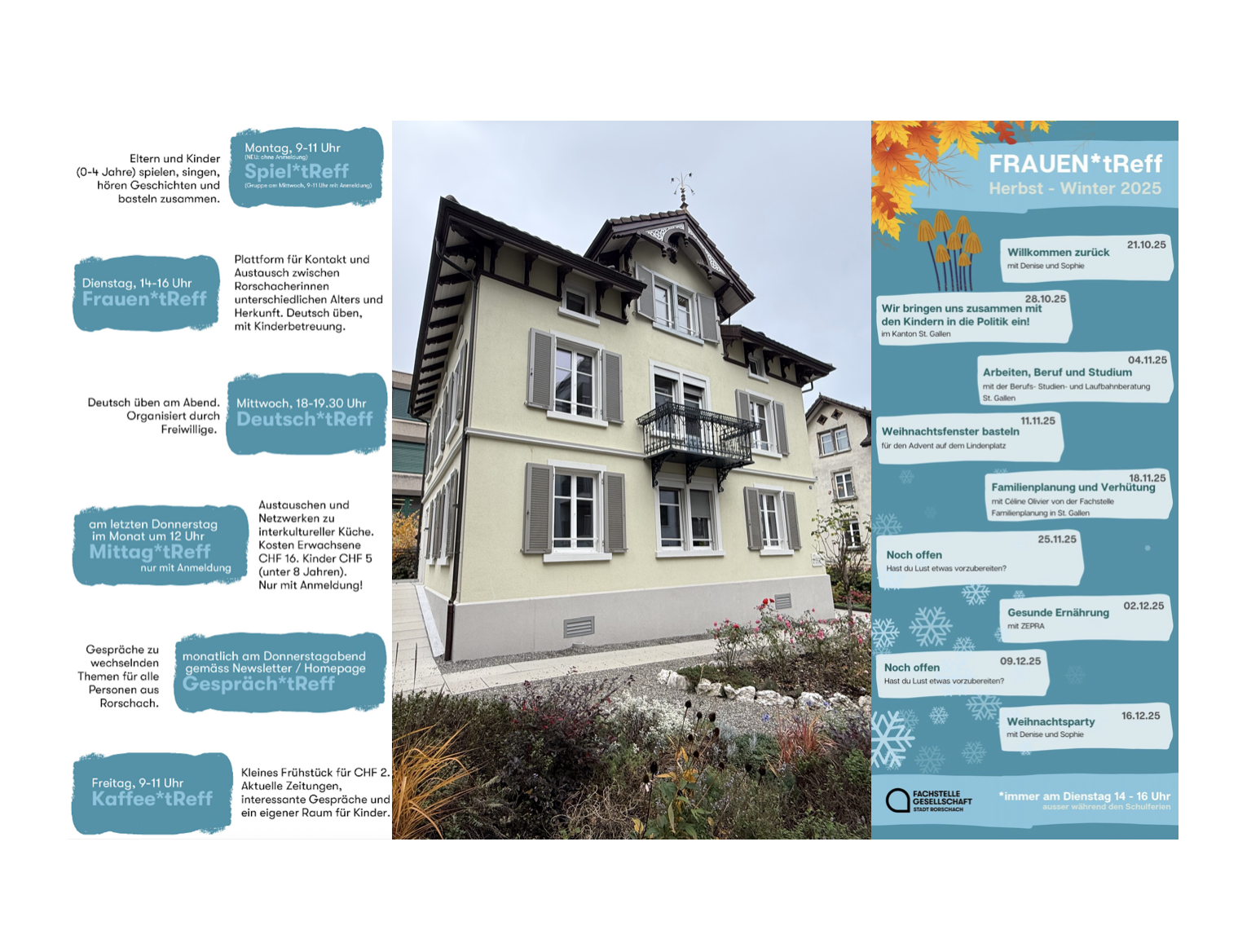 Die Herbstferien sind vorbei. Auf den Flyern unten sieht man das Angebot der Fachstelle Gesellschaft der Stadt Rorschach ab morgen Montag.