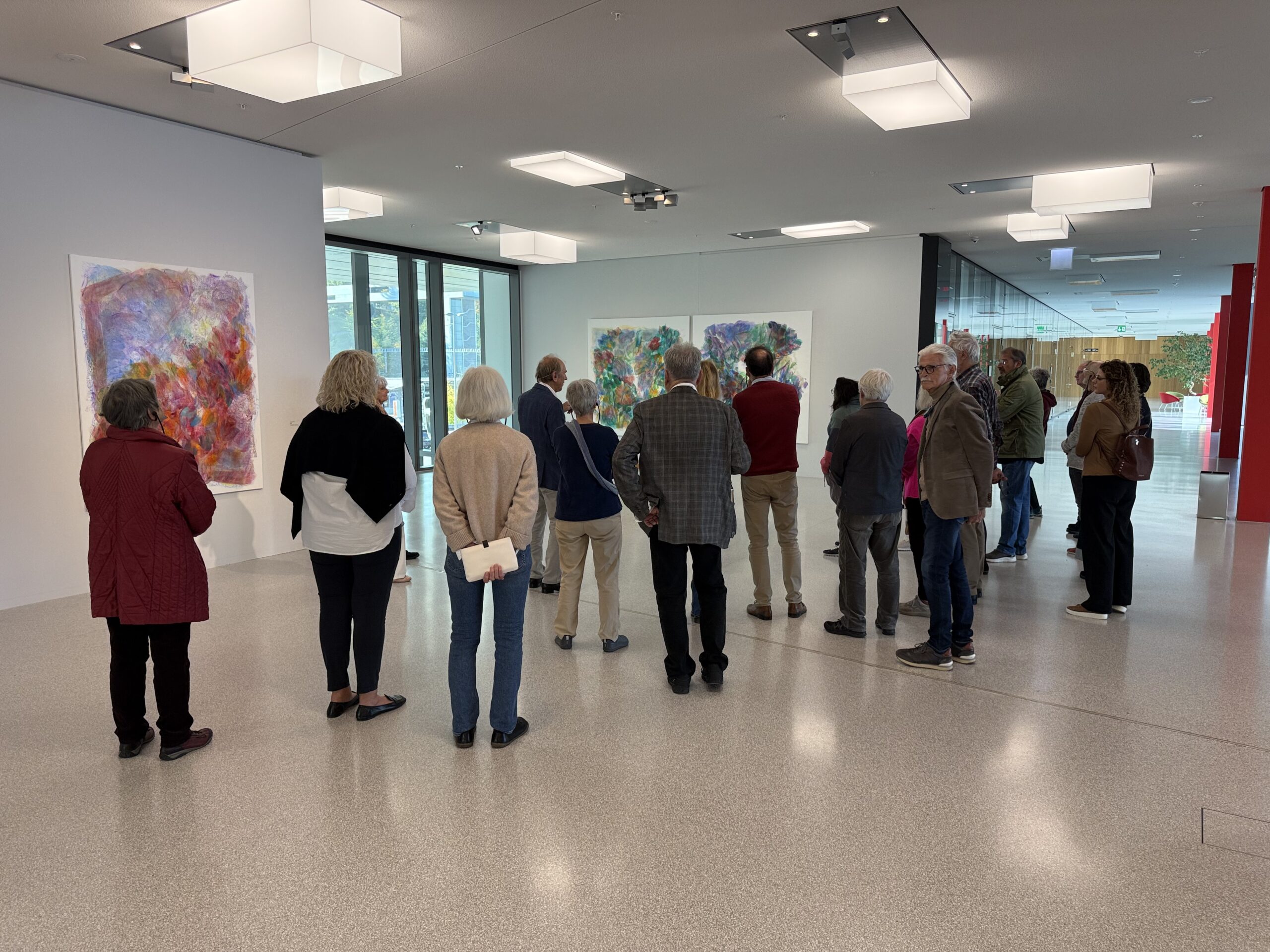 Seit über fünfzig Jahren erforscht Münch die Wechselwirkungen von Licht, Raum und Farbe. Seine abstrakten Werke beeindrucken durch vielschichtige Pigmentüberlagerungen und eine bemerkenswerte räumliche Tiefe. Viele nutzten die einmalige Gelegenheit, mit dem Künstler ins Gespräch zu kommen, mehr über seinen schöpferischen Prozess zu erfahren und seine aktuellsten Arbeiten aus dem Atelier kennenzulernen. Seine Ausstellung im Würth Haus Rorschach ist noch bis zum 26. April 2026 zu sehen. Hier einige Impressionen von der ersten Führung gestern Vormittag.