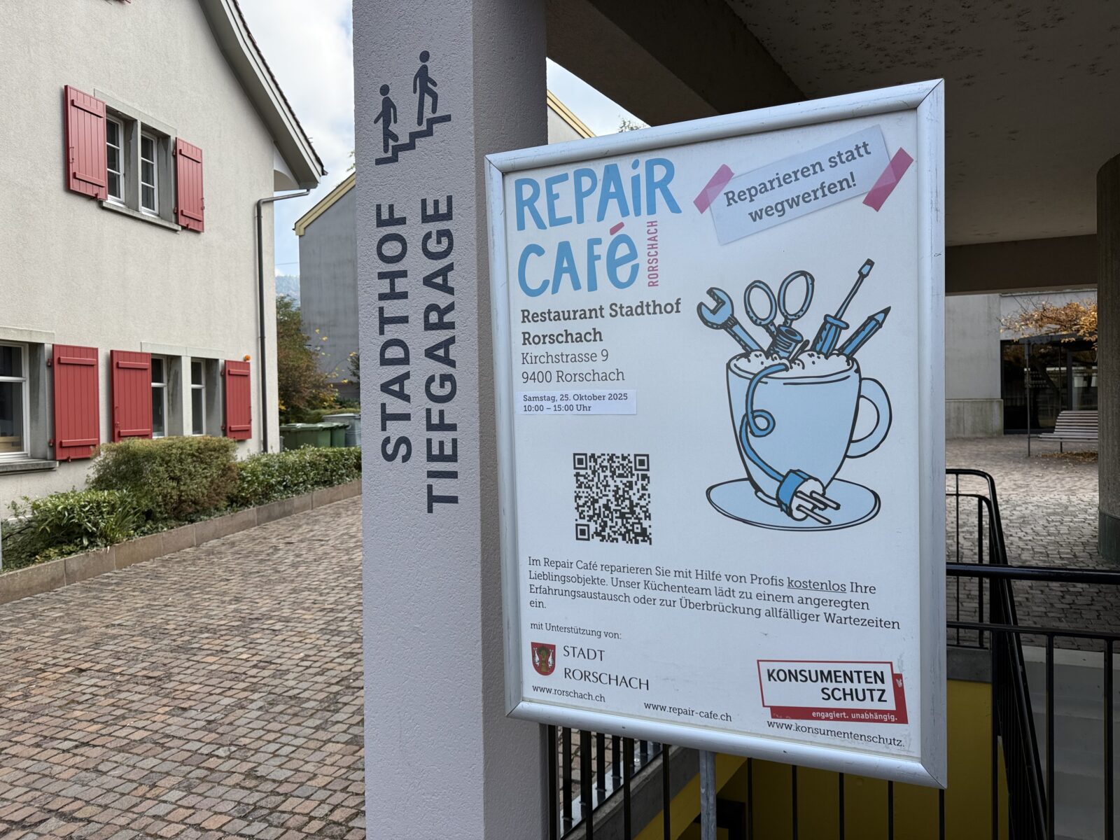 Kommenden Samstag, 25. Oktober 2025, findet von 10 bis 15 Uhr das erste Repair Café Rorschach im Restaurant Stadthof an der Kirchstrasse 9 statt. Im Repair Café flicken ehrenamtliche ReparateurInnen defekte Gegenstände unter dem Motto „Flicken statt Wegwerfen“. Ehrenamtlich, d.h. es werden keine Kosten verlangt. Spenden sind jedoch willkommen. Ziel dieser Aktion ist die Förderung der Flickkultur. Eine Mitarbeit der KundInnen beim Flicken (Learning by doing) ist erwünscht. Eine Anmeldung ist nicht erforderlich.