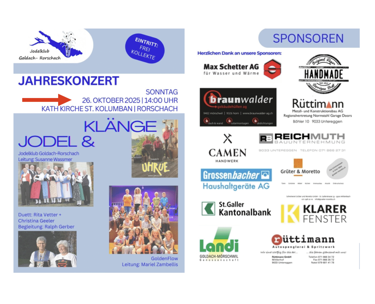 Konzertbeginn ist um 14 Uhr. Mehr zum Jodelklub Goldach-Rorschach findet man hier.