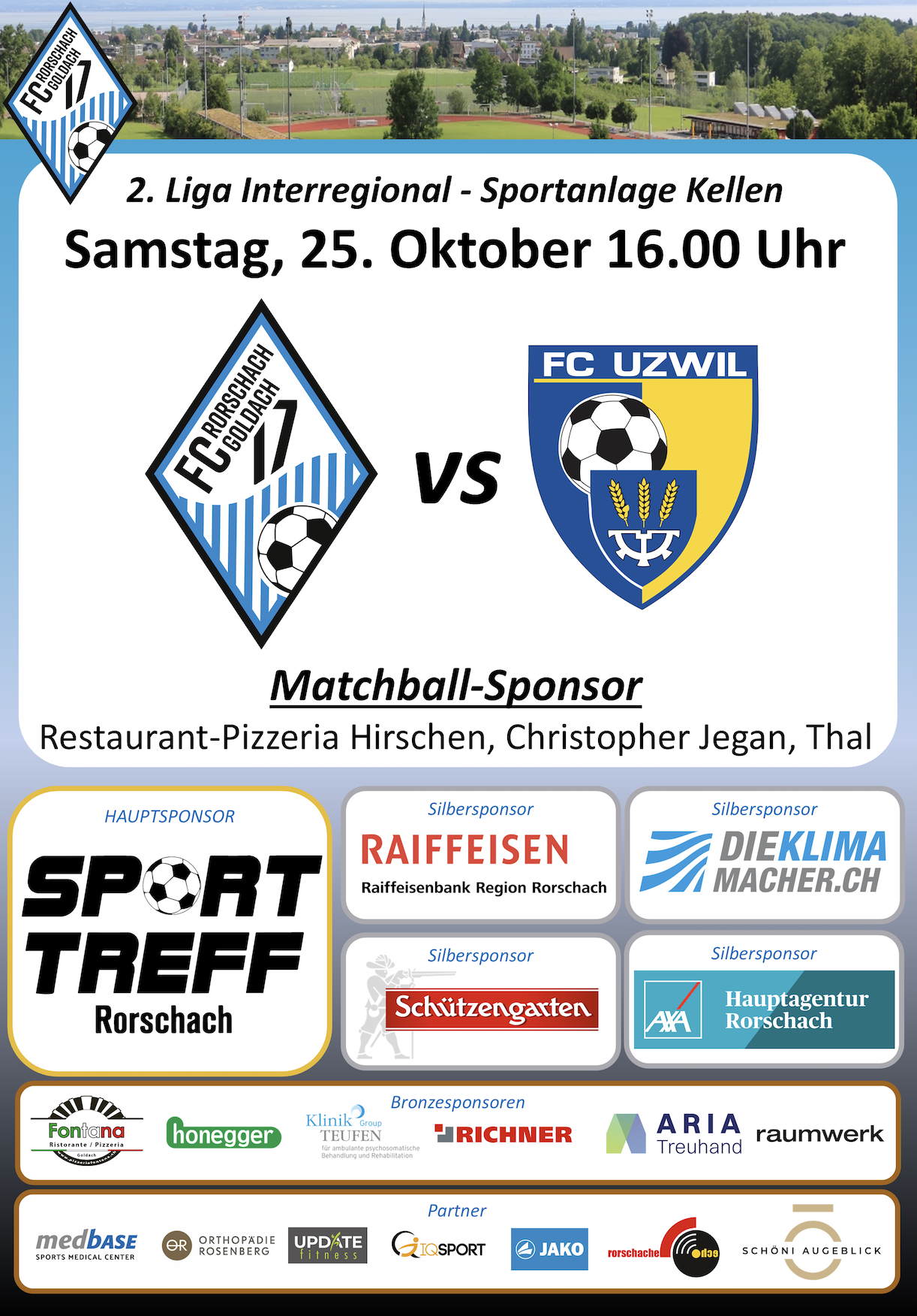 Ende September stand der FC Rorschach-Goldach 17 als Aufsteiger vor der schweren Aufgabe, sich in den direkten Duellen gegen die Top-Fünf zu bewähren. Nur zwei Minuten fehlten am letzten Wochenende, um nach dem 1:1 gegen den FC Linth (1. Liga Absteiger 2025), dem 3:3 im Heimspiel gegen den FC Weesen (2. Liga Aufsteiger 2025, Gruppe 2), auch beim FC Gossau (1. Liga Absteiger 2024) einen Punkt mitzunehmen. Somit resultieren gegen den FC Gossau und den FC Seefeld ZH (damals Tabellenführer) die bisher einzigen Niederlagen (jeweils 1:2) für das Blumer-Team. Nun also folgt mit dem FC Uzwil (1. Liga Absteiger 2025) der fünfte starke Gegner in Folge.