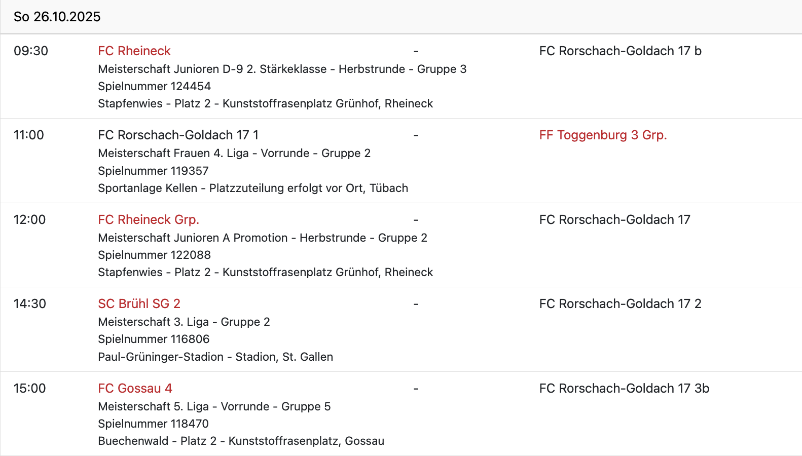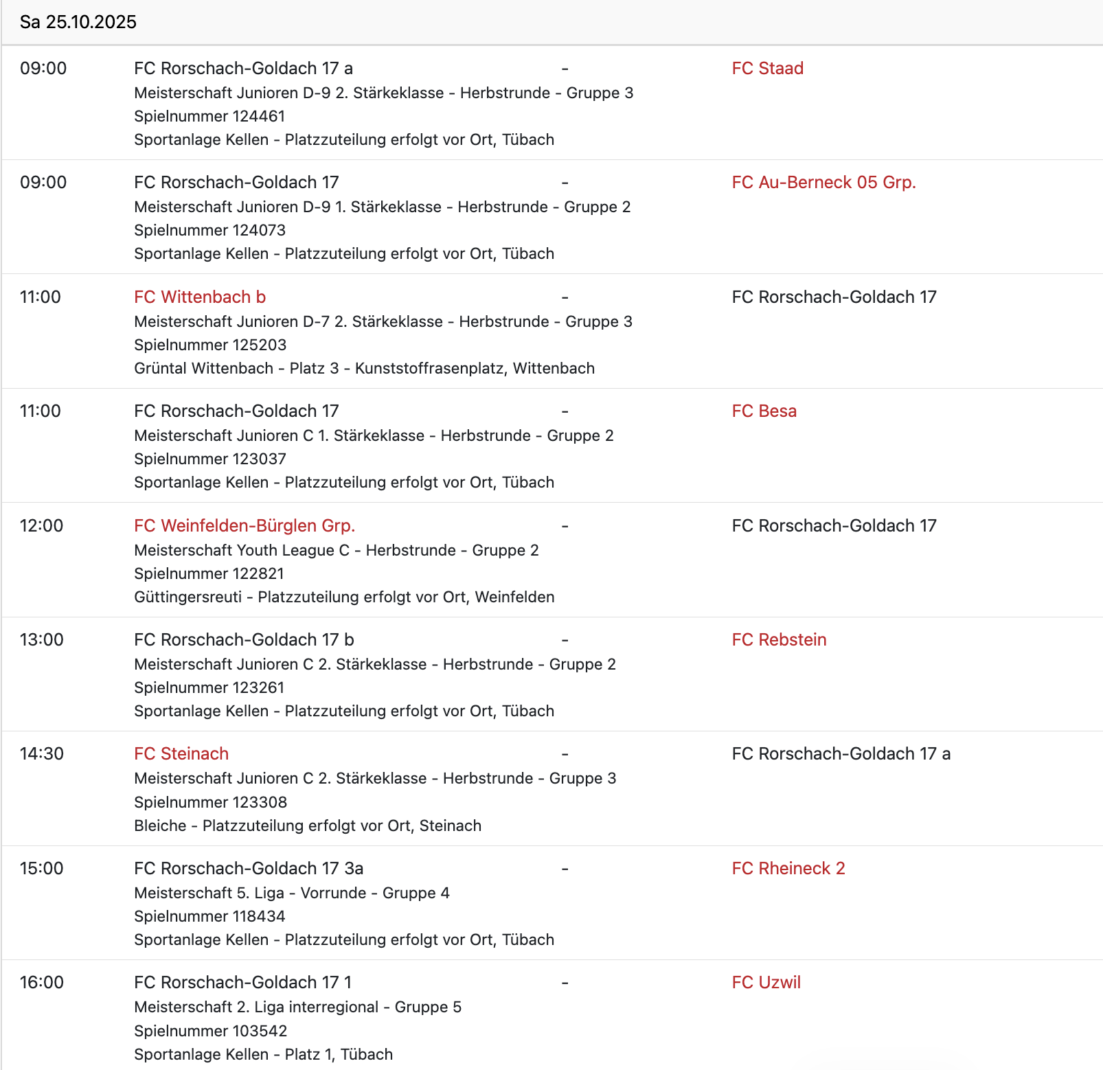 Diese FCRG17-Teams sind an diesem Wochenende im Einsatz: