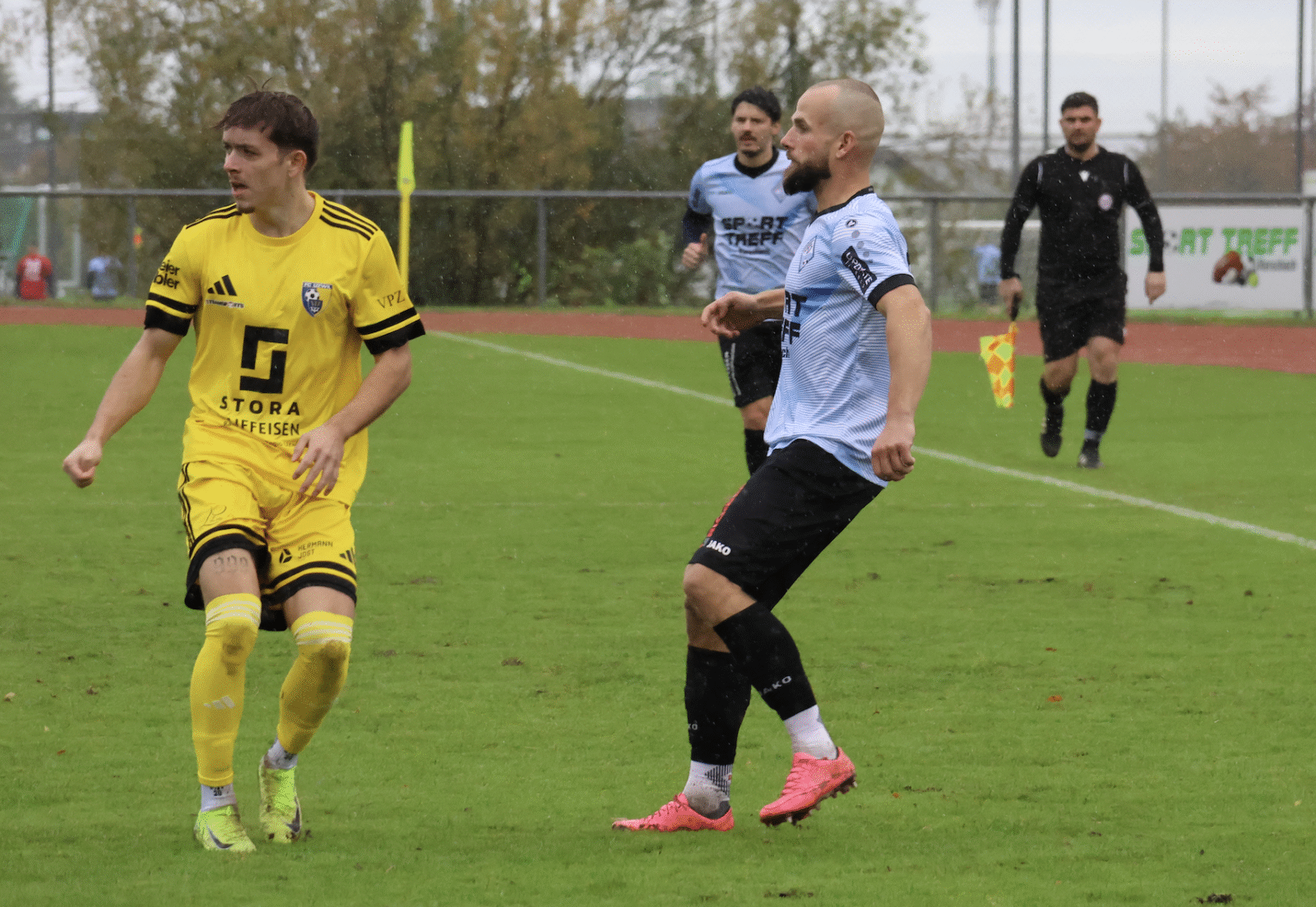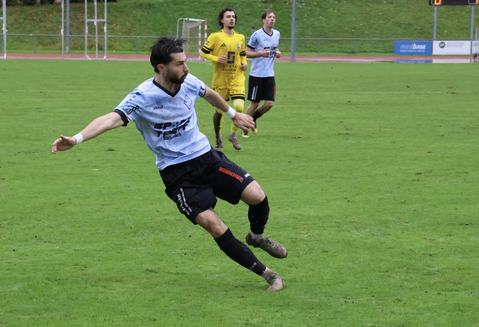 Es dauerte bis zur 40. Minute, bis das Kellen-Team erhöhte Gefahr vor dem Gästetor aufbrachte. Nach der dritten Ecke in Folge, war es ausgerechnet der bisher auffälligste Stürmer der Einheimischen, Sinan Oezcelik, welcher den Ball aus fünf Meter über das Tor hämmerte. Auf der Gegenseite führte ein viel zu kurz gespielter Rückpass von Jan Schultes zu höchster Gefahr. Der ausgezeichnete Jordi Forster blieb im eins gegen eins mit Samuel Weber der Sieger. Bereits in der dritten Minute der Nachspielzeit ereignete sich noch Kurioseres. Jordi Forster war weit aus dem Tor geeilt und wollte den allein zusprintenden Fabio Moser abdrängen. Als die einheimischen Fans bereits mit dem Schlimmsten rechneten, rutschten beide Spieler ohne grossen Körperkontakt auf dem glitschigen Acker aus…