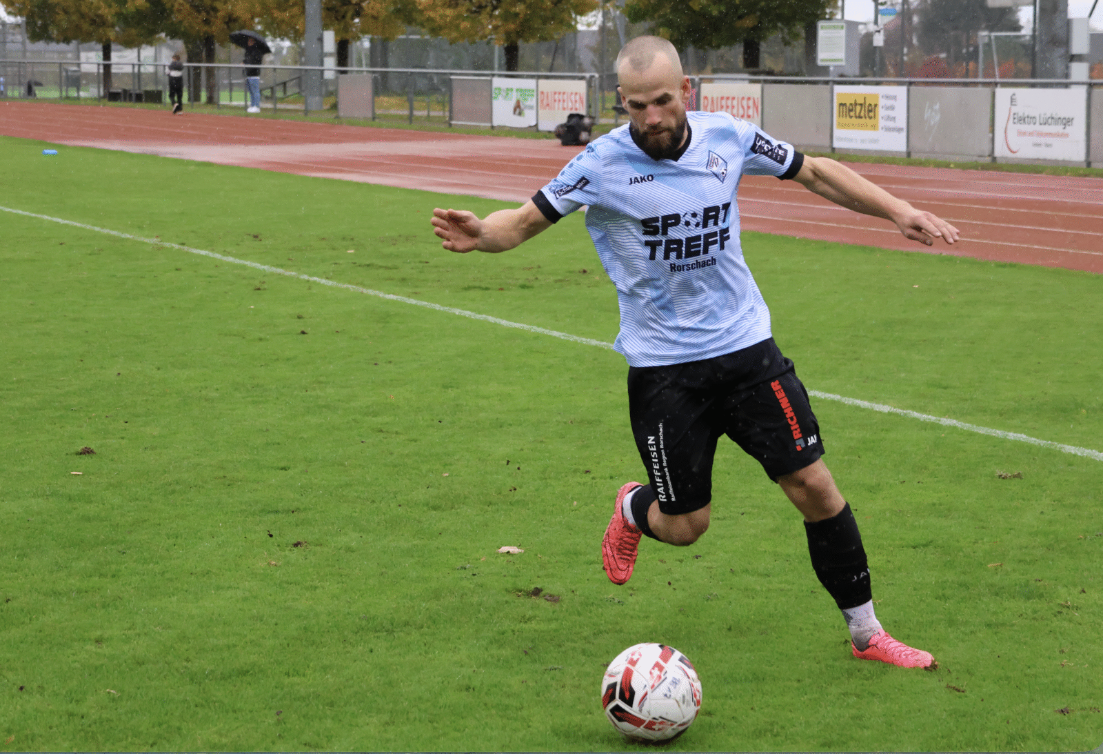 Der FC Rorschach-Goldach hatte fast einen Auftakt nach Mass. Der Schuss vom trickreichen Sinan Oezcelik landete jedoch nach 1.42 Min. nur an der Latte. Danach zeigten aber die Gäste, weshalb sie sich in den letzten Spielen in die Spitzengruppe gespielt haben. Auf dem immer schwerer zu bespielenden Rasen, waren die Angriffe des FC Uzwil zielstrebiger und stets gefährlich. Trotzdem brauchte es ein krasses Fehlzuspiel von Filip Degen bei der Entstehung des frühen Gegentores. Fabio Moser nützte die Chance problemlos zu seinem vierten Saisontreffer.