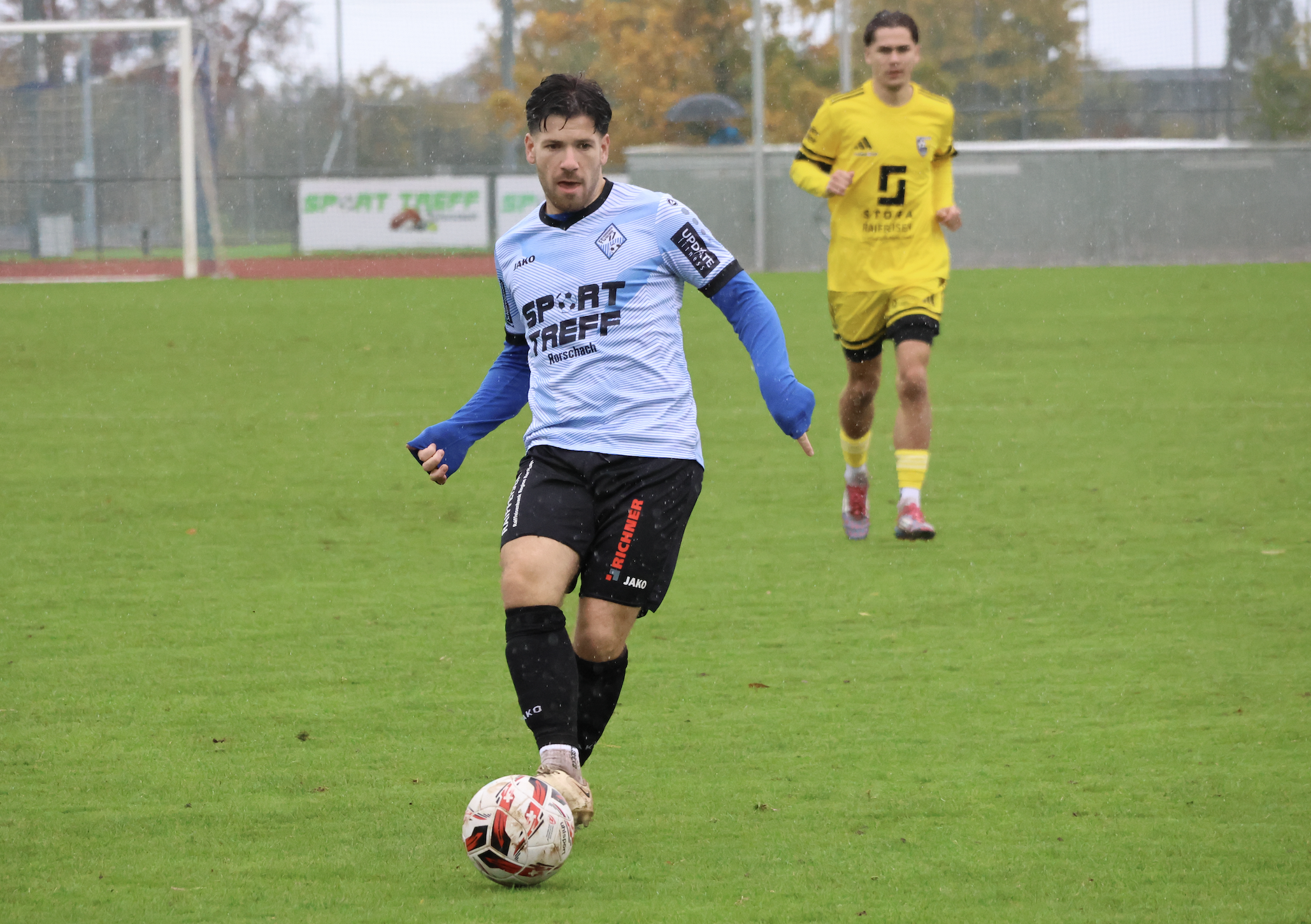 Der FC Rorschach-Goldach hatte fast einen Auftakt nach Mass. Der Schuss vom trickreichen Sinan Oezcelik landete jedoch nach 1.42 Min. nur an der Latte. Danach zeigten aber die Gäste, weshalb sie sich in den letzten Spielen in die Spitzengruppe gespielt haben. Auf dem immer schwerer zu bespielenden Rasen, waren die Angriffe des FC Uzwil zielstrebiger und stets gefährlich. Trotzdem brauchte es ein krasses Fehlzuspiel von Filip Degen bei der Entstehung des frühen Gegentores. Fabio Moser nützte die Chance problemlos zu seinem vierten Saisontreffer.